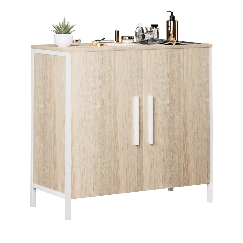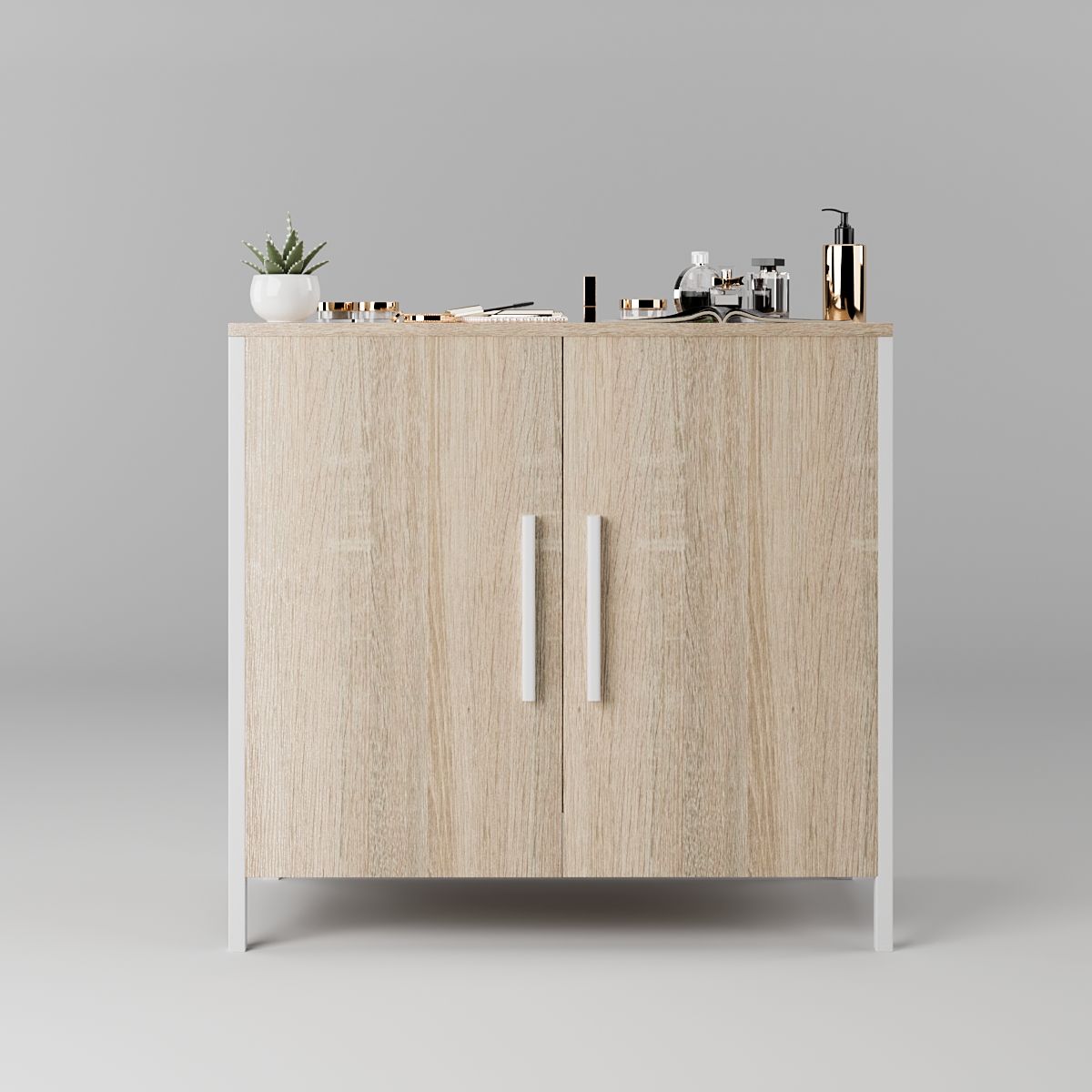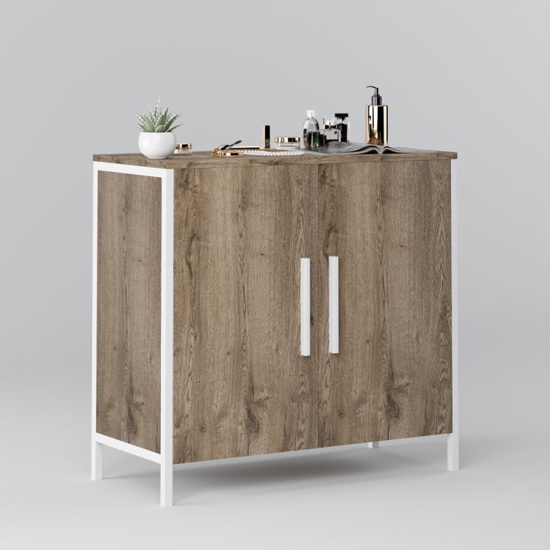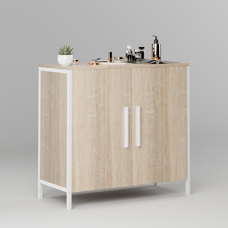 Тумба виготовлена з якісного ЛДСП. Ми пропонуємо п'ять варіантів сучасних кольорів на вибір: білий, чорний, дуб сонома, урбан, аліканте. Біла основа конструкції виготовлена із металу – порадує вас довговічністю. Вона покрита термофарбою, що передбачає захист від вологи та зовнішніх механічних пошкоджень.