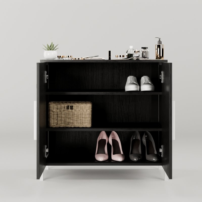Підставка для взуття складається з трьох містких внутрішніх полиць. Висота ніжок даного виробу оптимальна для комфортного збирання пилососом. Тумба може бути розміщена як у передпокої, так і в спальні, і включена в готовий комплект меблів Мальта Чорна у нас на сайті. Приємним доповненням до моделі може стати елегантне дзеркало, широкий вибір якого представлений на нашому сайті.