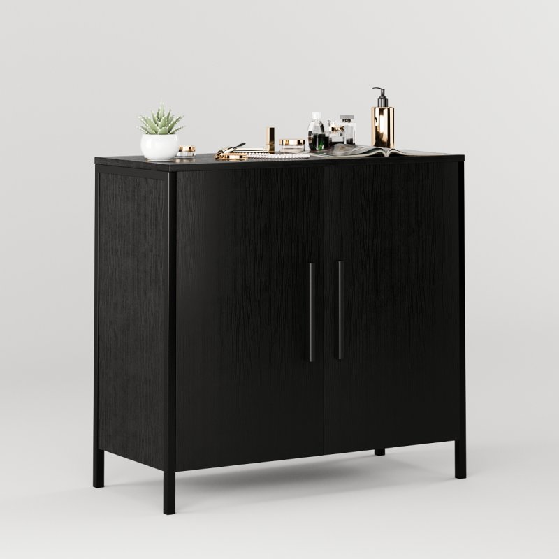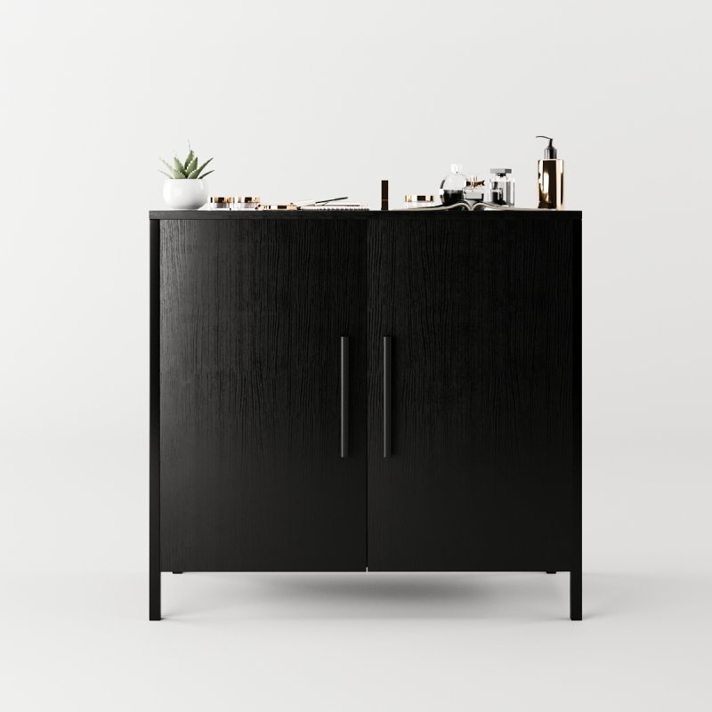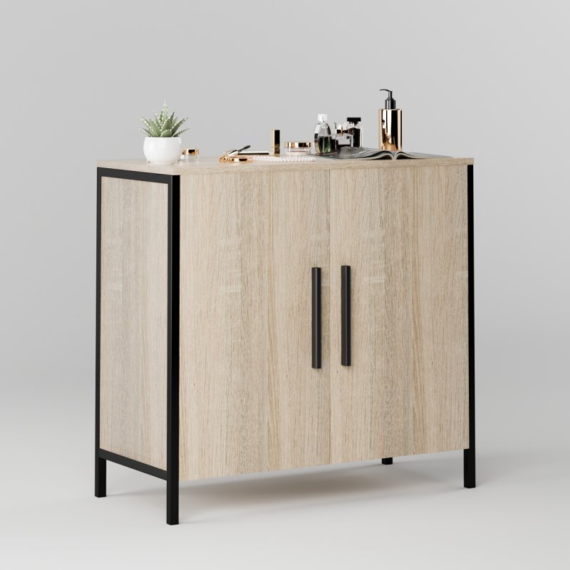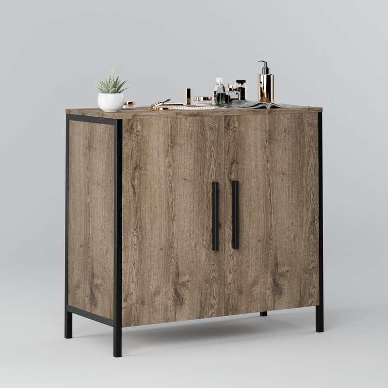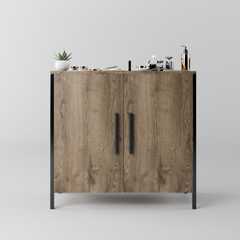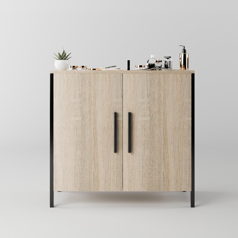 Тумба виконана з ЛДСП, ми надаємо чотири варіанти кольору, щоб ви могли вибрати найбільш вам підходящий. Чорна основа конструкції металева та надійна у використанні. Вона покрита термофарбою, що передбачає захист від вологи та вогкості, будь-якого псування металу.