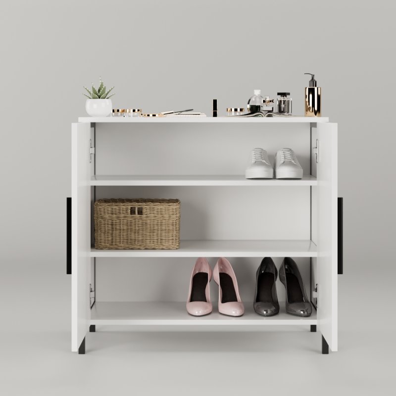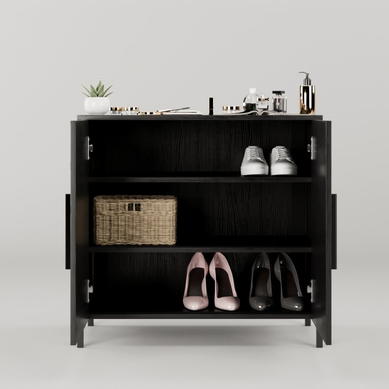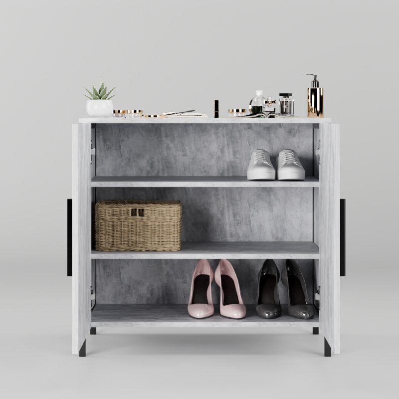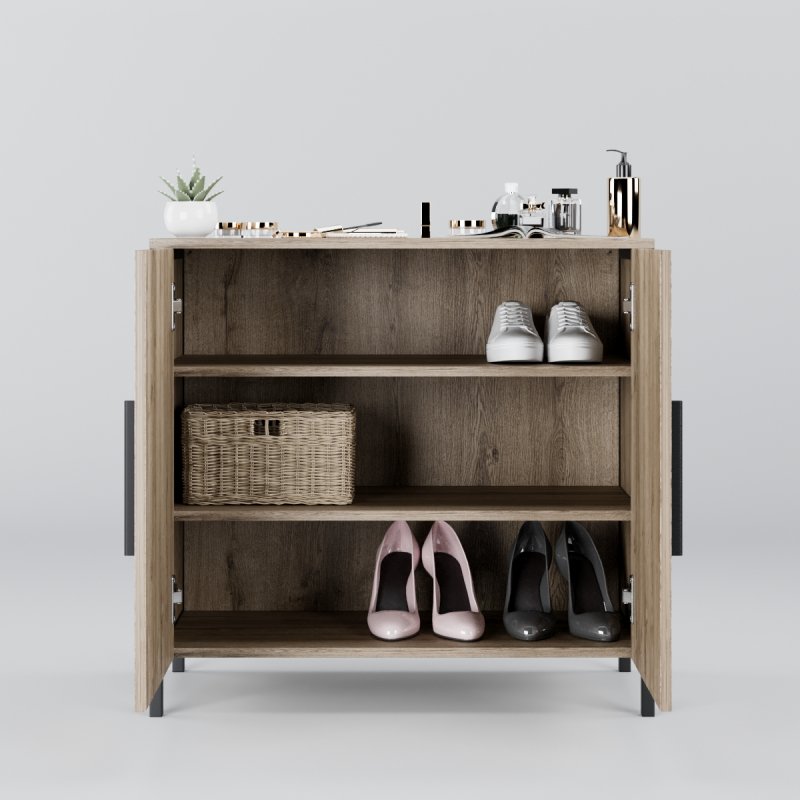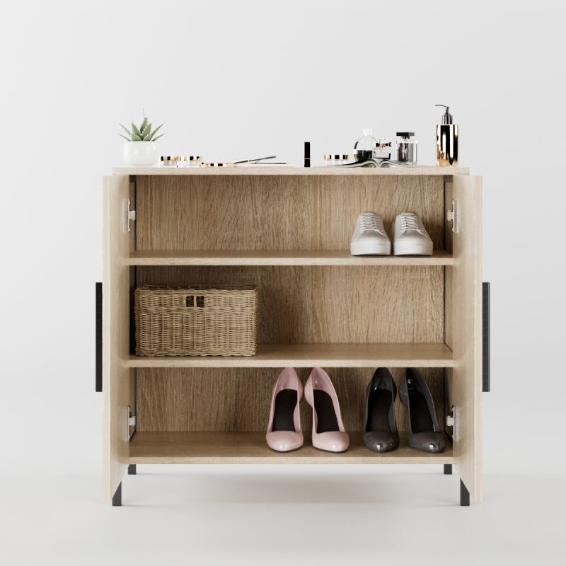 Підставка для взуття має три місткі полиці всередині, хоча зовні виріб не вирізняється особливою габаритністю. Прибирати під тумбою пил, що накопичився, буде досить легко завдяки ніжкам, висота яких передбачає прибирання роботом пилососом.