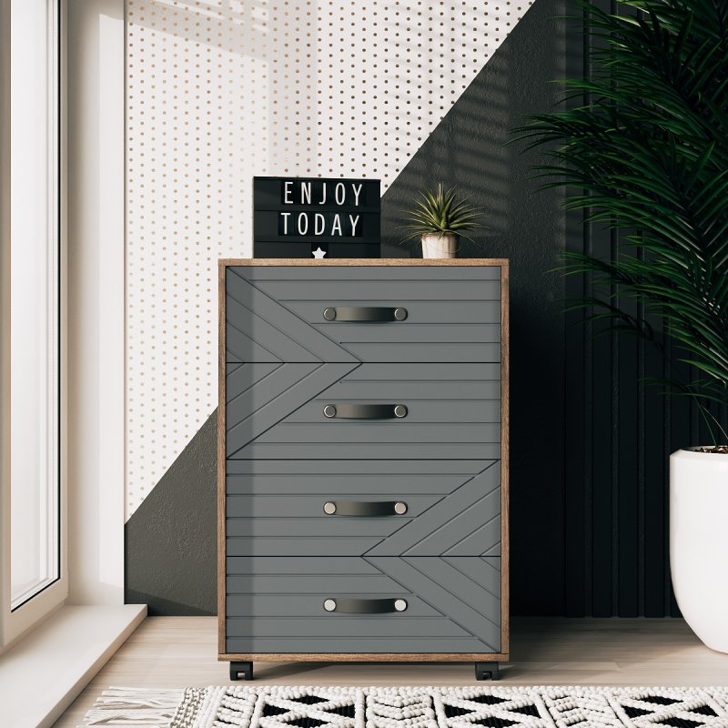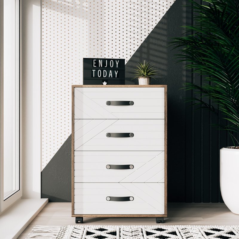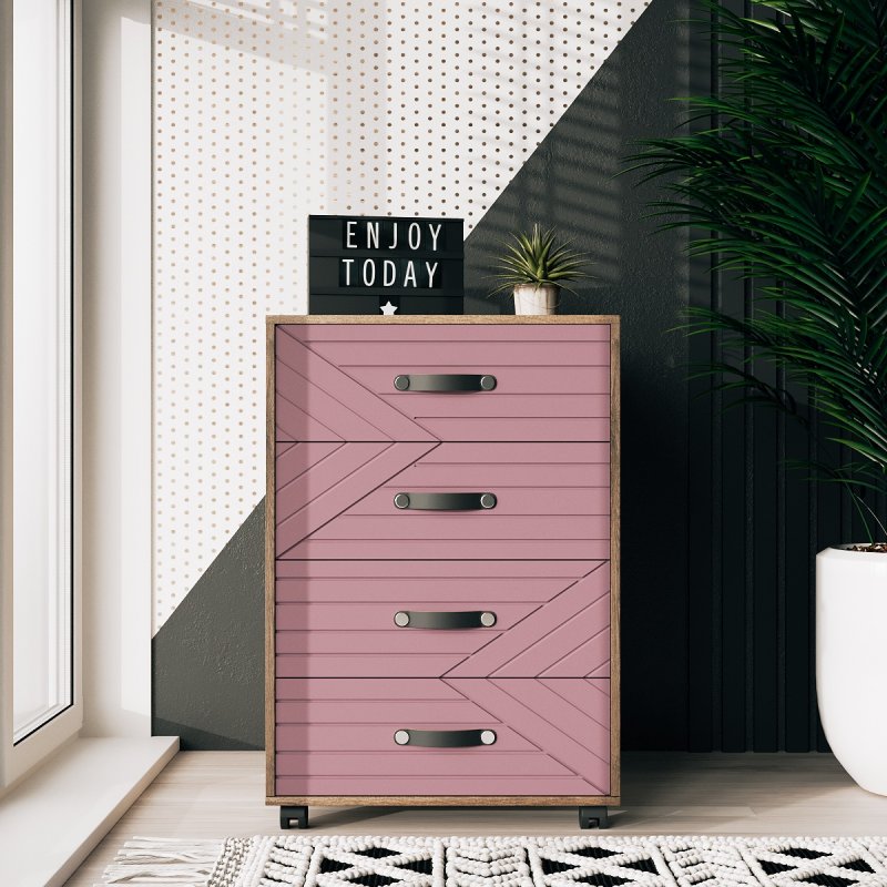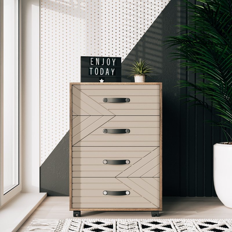 Тумба Марокко - це чудовий додаток до шафи або альтернатива йому. Маючи чотири просторі висувні ящики, вона вміщує в себе все найнеобхідніше (від нижньої білизни до спального приладдя, канцелярії та косметики). Тумба з ящиками на колесах чудово впишеться в інтер'єр будь-якого приміщення. Її можна розмістити як у спальні, так і в передпокої, вбиральні або офісі.
