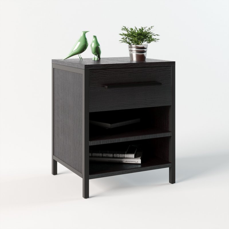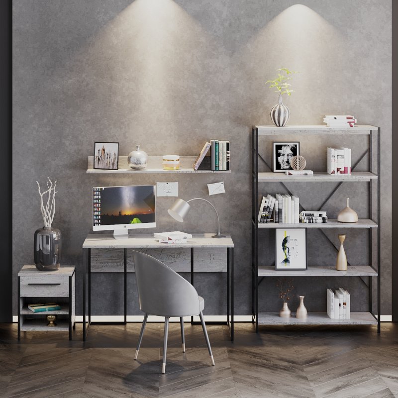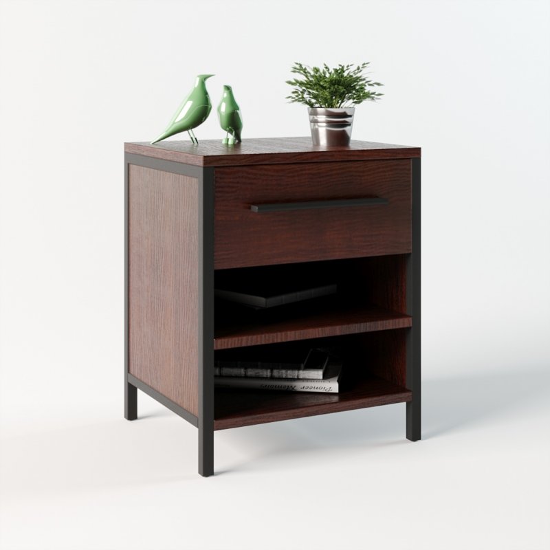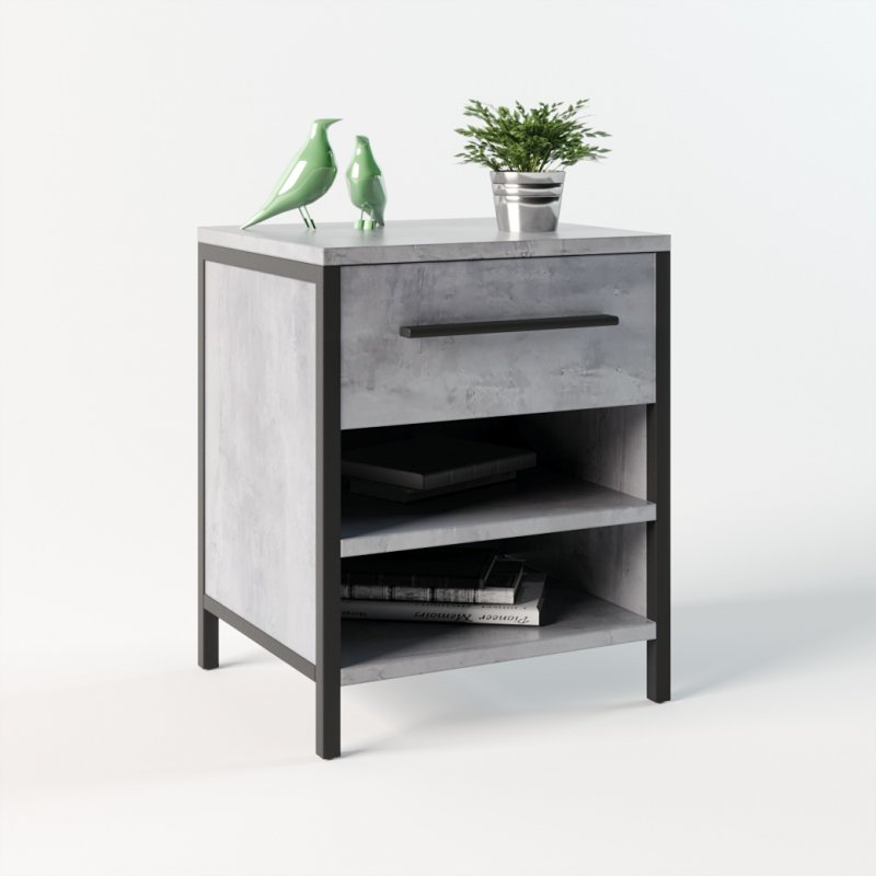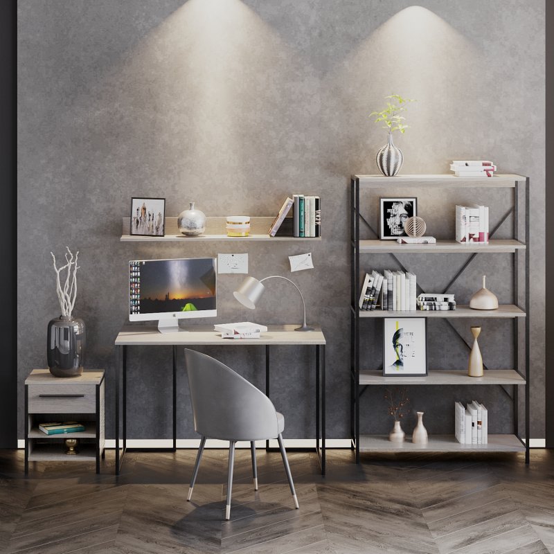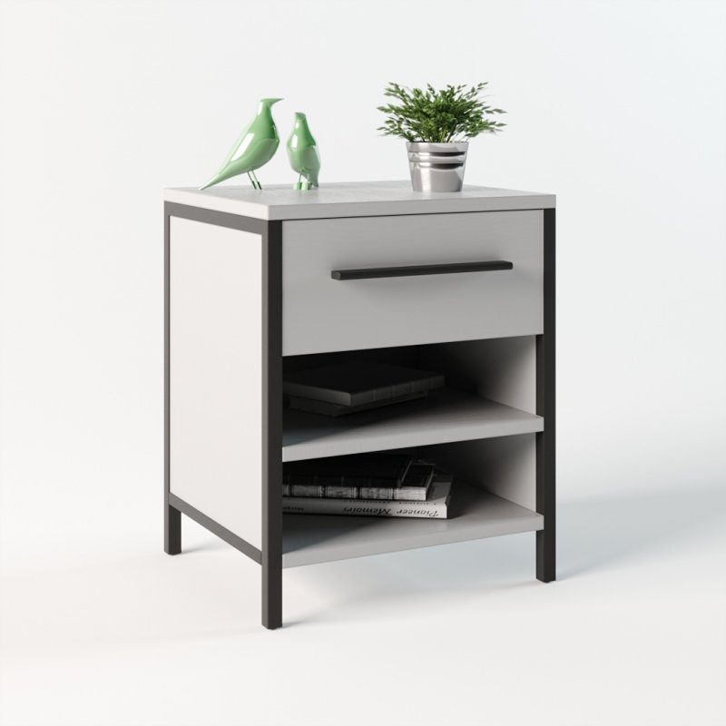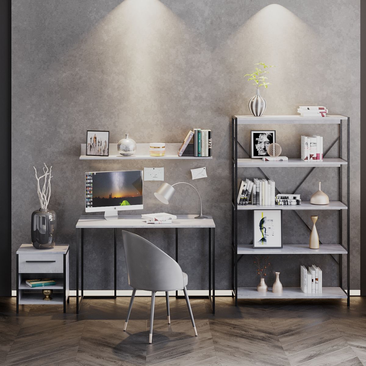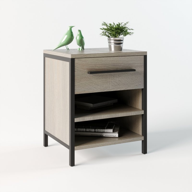 Тумба офісна 02 виготовлена у тенденціях стилю "Лофт": проста форма, функціональна конструкція, основні матеріали виготовлення - метал та ДСП. Поєднання міцної металевої труби квадратного перерізу та ДСП із текстурою натурального дерева виглядають досить брутально, але надійно. Модель має дві відкриті полички в нижній частині тумби та висувний ящик зверху.