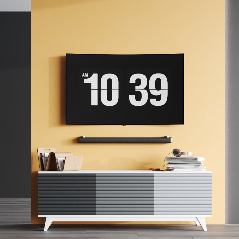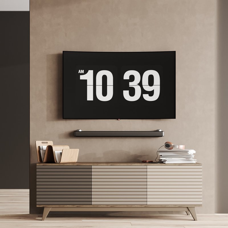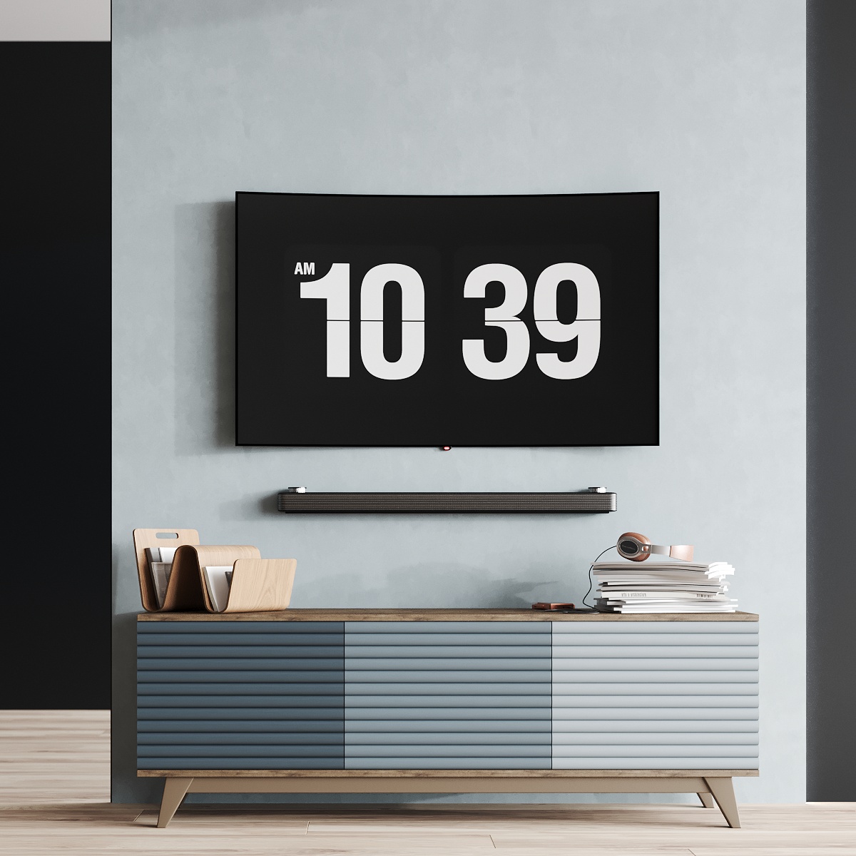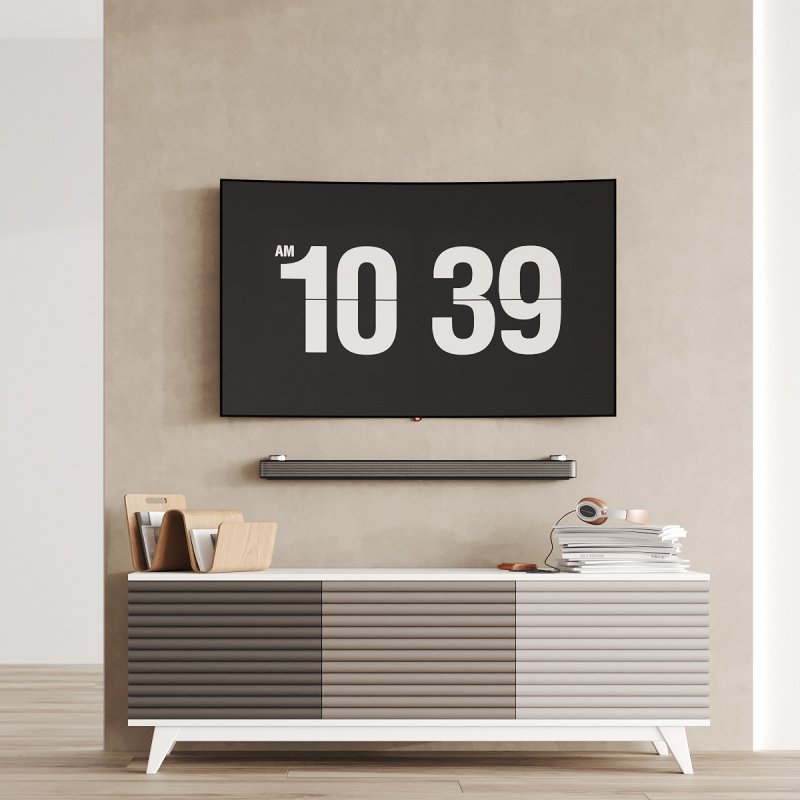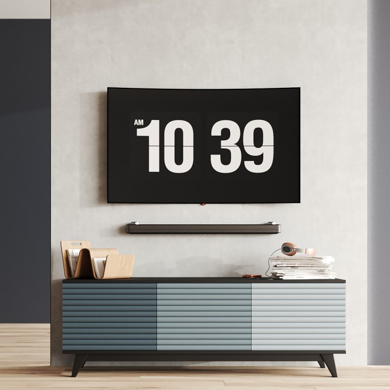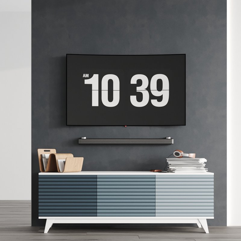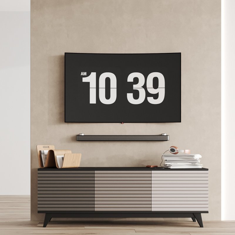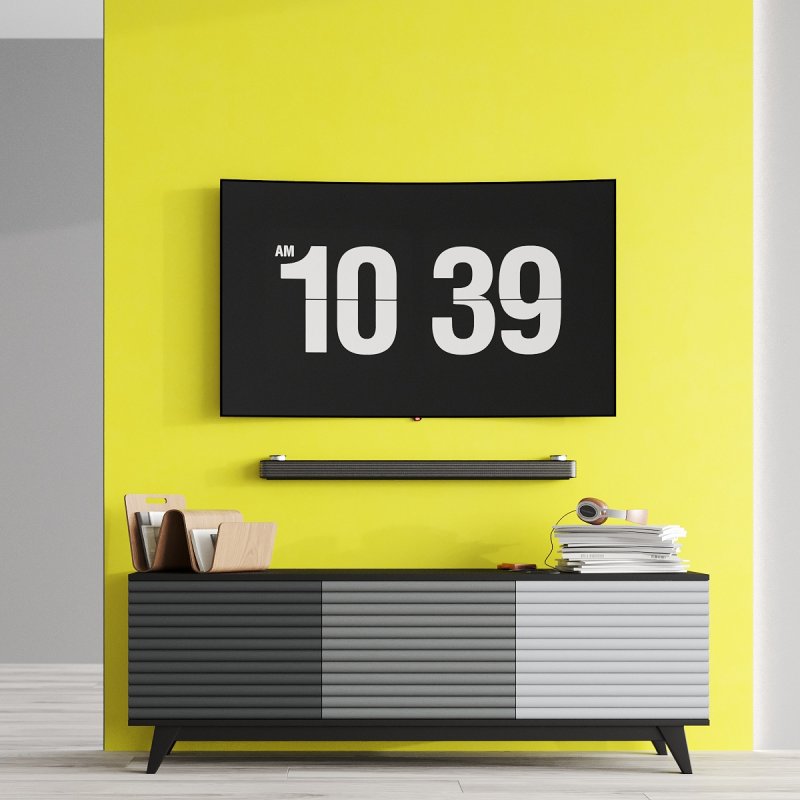 Основною перевагою даної моделі є те, що її витончений формат дозволить підкреслити витончені лінії сучасних телевізорів. Головним трендом актуального стилю в інтер'єрі є мінімалізм та функціональність. На вибір пропонується 9 варіантів колірних відтінків: поєднання чорного, білого, аліканте з попелястим, какао та блакитом. Розмір виробу (ВхШхГ): 525х1500х400 мм.