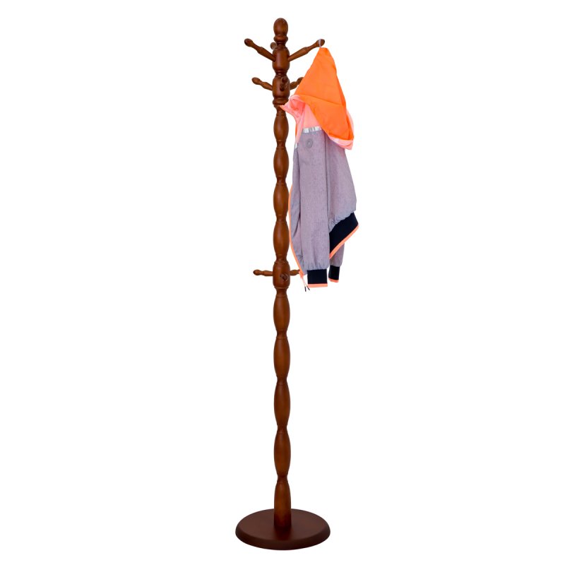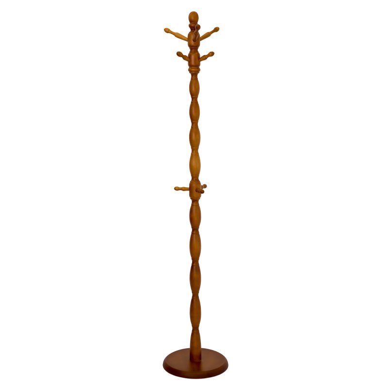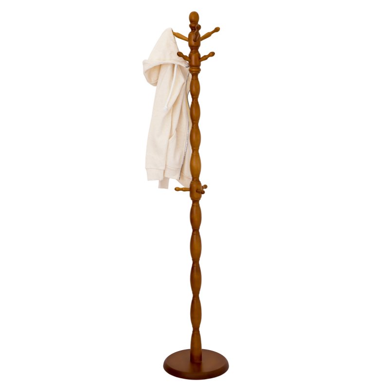 Вішалка складається з точених фігурних ділянок стійки та трьох рівнів ріжків (по три у кожному рівні). Ріжки верхнього рівня найдовші, призначені для головних уборів. Середній рівень ріжків трохи коротший за верхній, ці ріжки призначені для верхнього одягу. Нижні ріжки найкоротші – вони потрібні для того, щоб повісити на них сумку чи рюкзак. Вішалка має стійку основу у вигляді дерев'яного диска, що дозволяє вішалці витримувати значне навантаження верхнім одягом.
