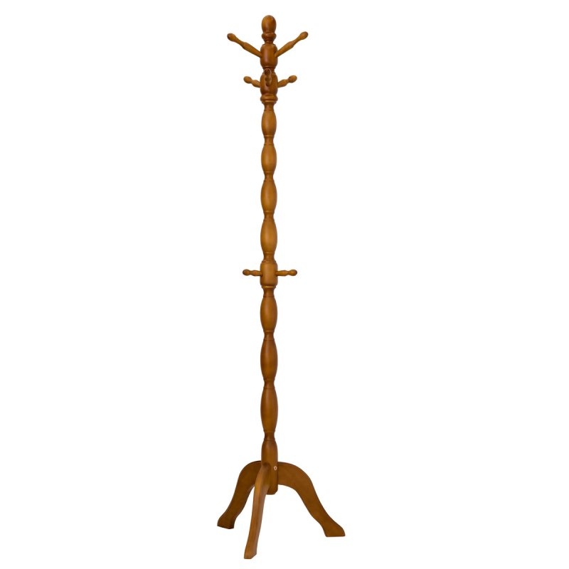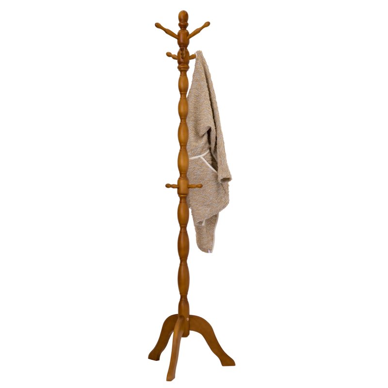 Що таке модель вішалки Ліон? Це вішалка для підлоги з натурального дерева, її частини виточені з масиву берези і вкриті стійким поліуретановим лаком для надання їй тону і благородного блиску, а також для захисту від випадкових невеликих пошкоджень. Для надання вішалці більшої стійкості наші конструктори зробили в ній основу у вигляді триноги. Воно дозволяє їй залишатися вертикальним навіть при великому навантаженні верхнім одягом.