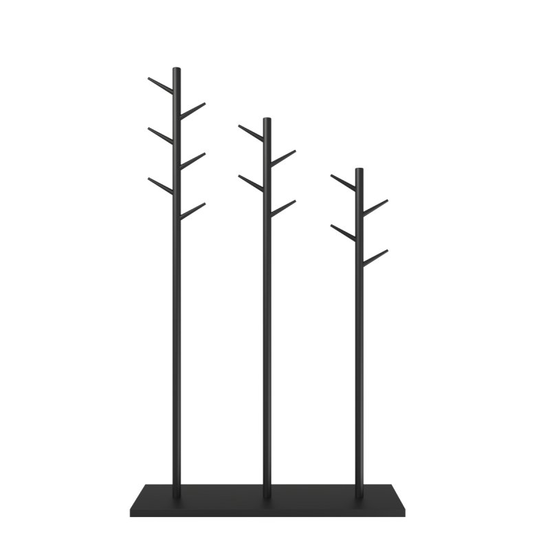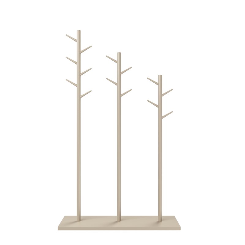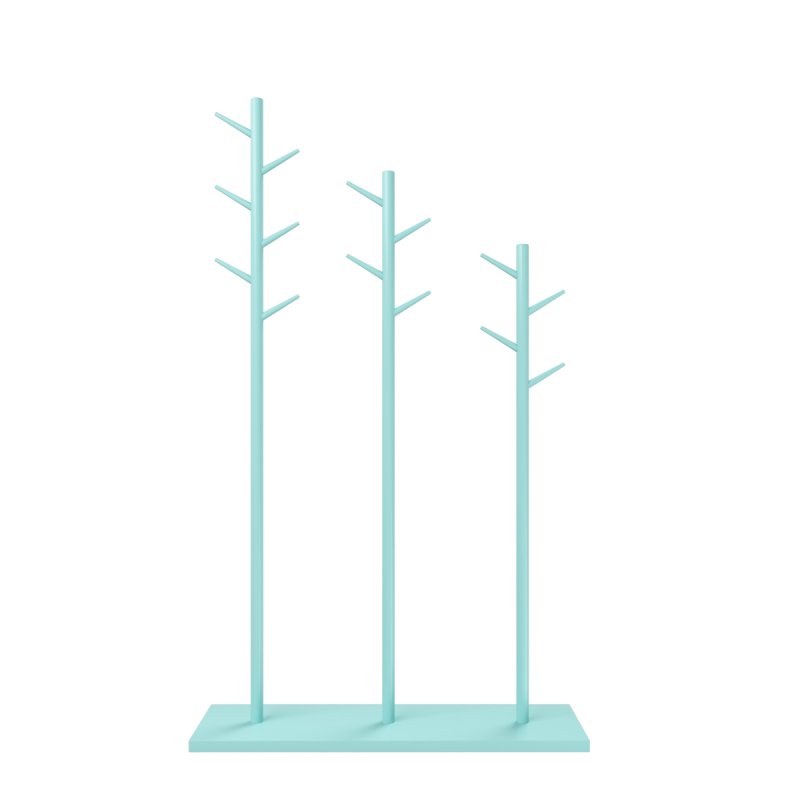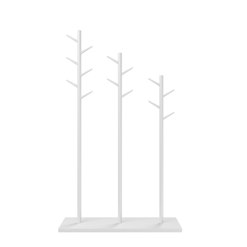 Якщо вас турбує її стійкість, можете не сумніватися, що представлена модель абсолютно статична і надійна. Основа вішалки виконана з натурального масиву берези – це твердий та міцний матеріал, який добре витримує навантаження та кріпильні з'єднання. Вішалка складається з трьох вертикальних дерев'яних стійок, які фіксуються в основі, і таких же гачків-гілочок. Поверхня виробу покрита якісним і екологічно безпечним лаком, можете вибрати колір, що найбільш підходить у свій інтер'єр, від білого до ультрамодного сьогодні бірюзового, капучино або ін.