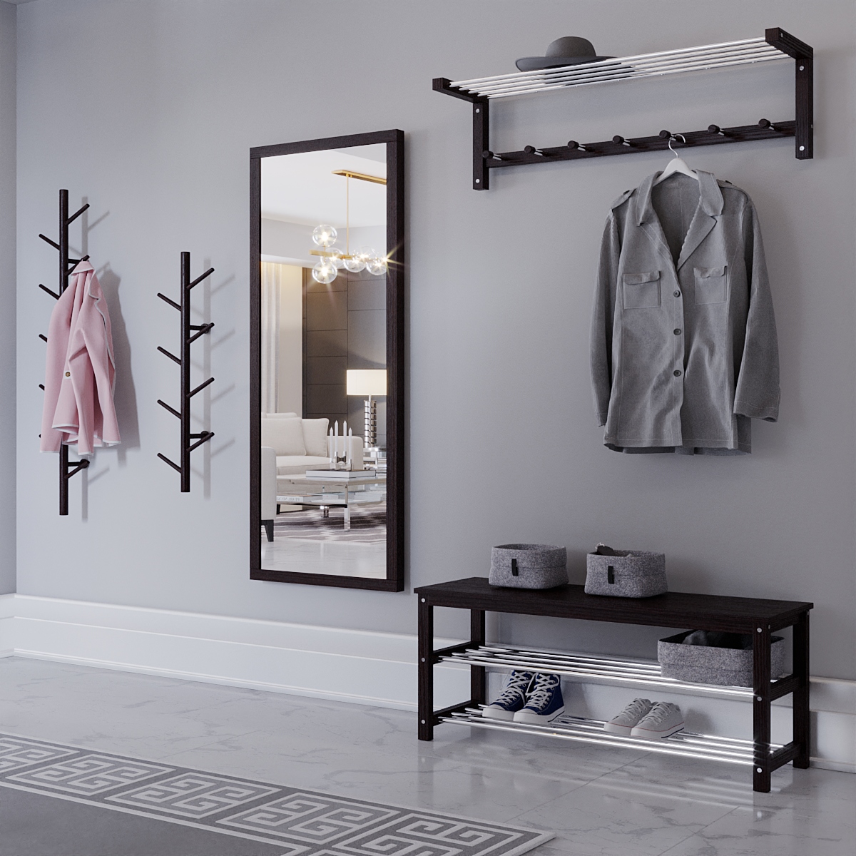 Велике настінне дзеркало в передпокої або гардеробній дозволить вам оцінити себе у повний зріст, погодьтеся, це дуже важливо при формуванні цілісного образу. Як правило, дзеркало не вимагає багато місця для розміщення, але відіграє першочергову роль у гардеробі.