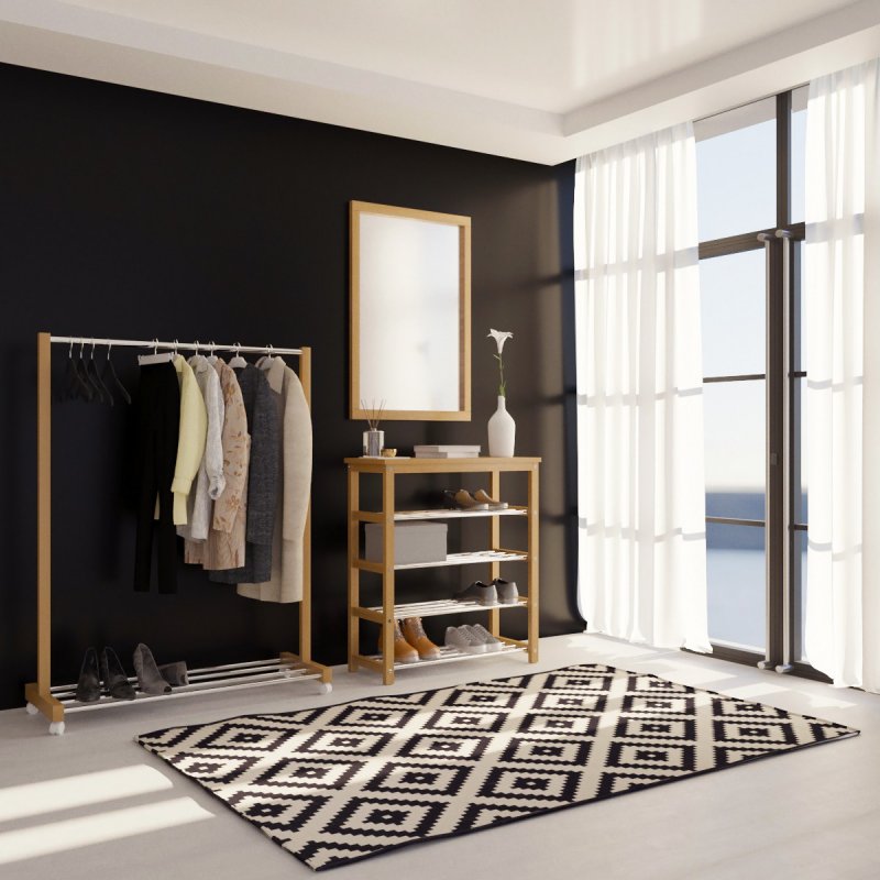 Можна купити настінне дзеркало як окрему одиницю або у складі наших нових передпокоїв із серії "Невада". Передпокій "Невада 7" включає, крім настінного дзеркала, добротну та містку підставку для взуття "NVD-7" та стійку для одягу "NVD-05". Стійка має зручні та маневрені колеса, що дозволяють легко переміщувати її за необхідності. Основний матеріал виготовлення – масив берези, додаткові – ЛДСП та метал.