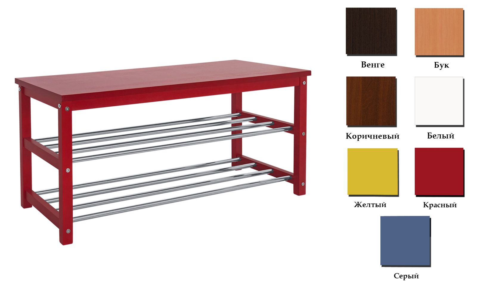 Полки выполнены из стальных хромированных труб диаметром 16 мм. Расстояние от пола до нижней полочки – 65 мм, верхней – 265 мм. Вы можете разместить на полках банкетки 8-10 пар взрослой обуви, это позволит содержать прихожую в порядке и не создавать под ногами лишний хаос.