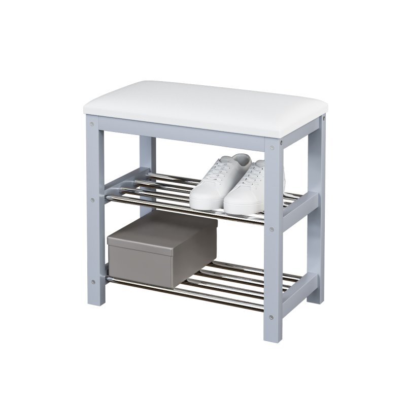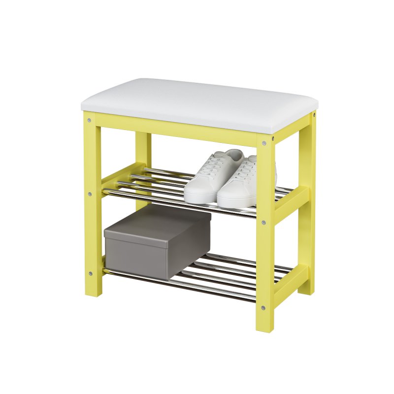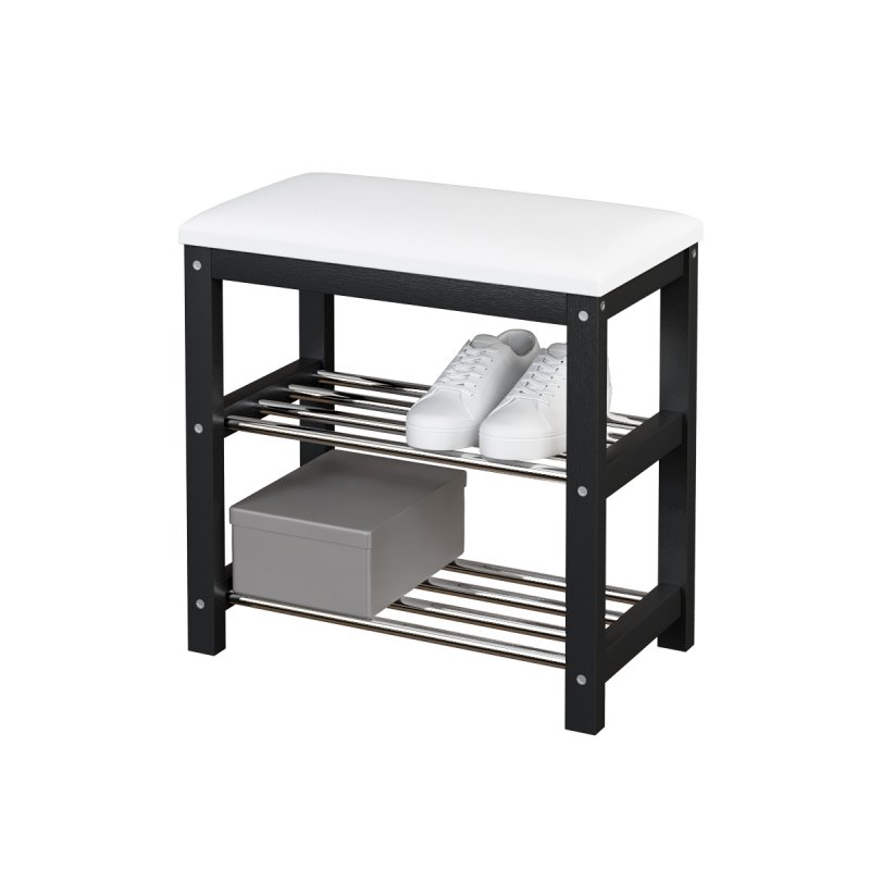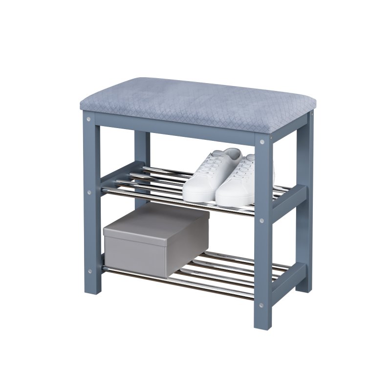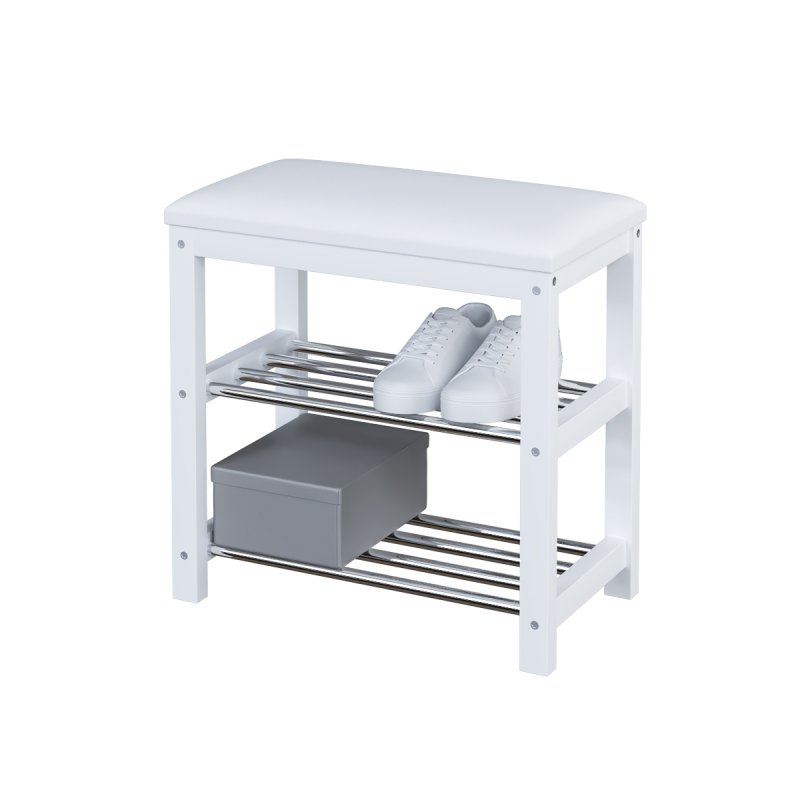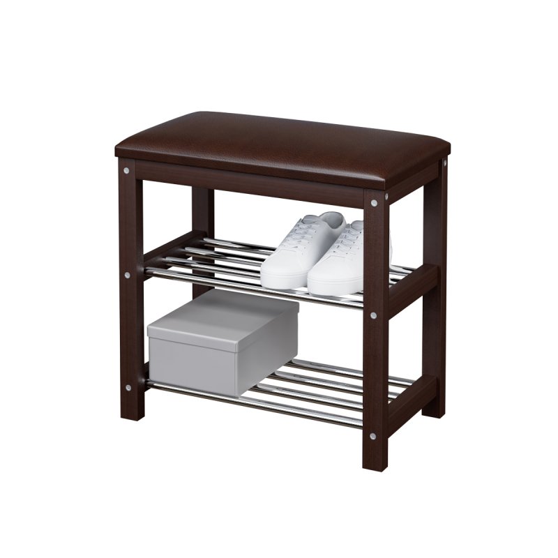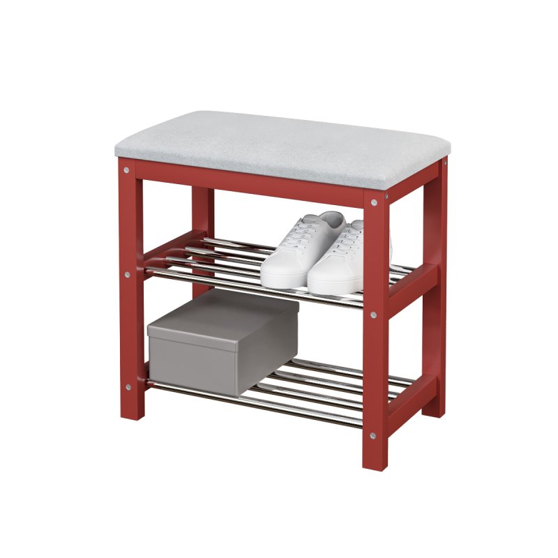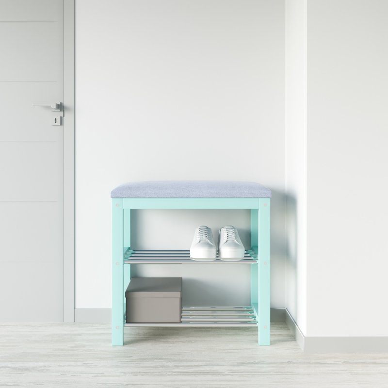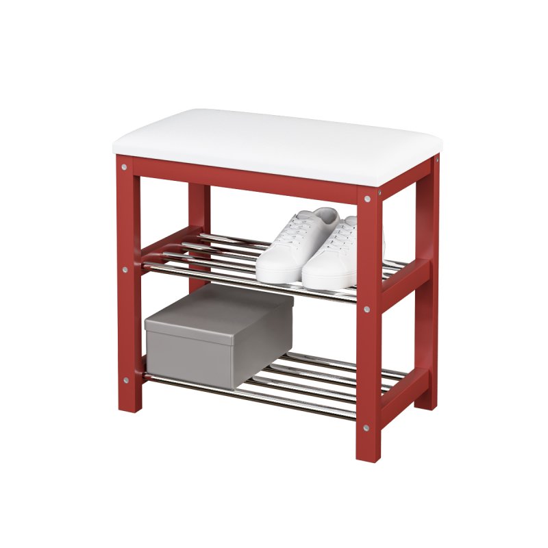 Главное, чем интересна такая банкетка для обуви с полкой – компактность. Благодаря негабаритным размерам, запросто вписывается в малые проемы, ниши и идеально – в небольшую прихожую. Две открытые полки вмещают до 6 пар сапог и туфель.