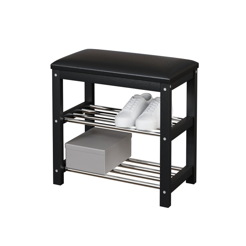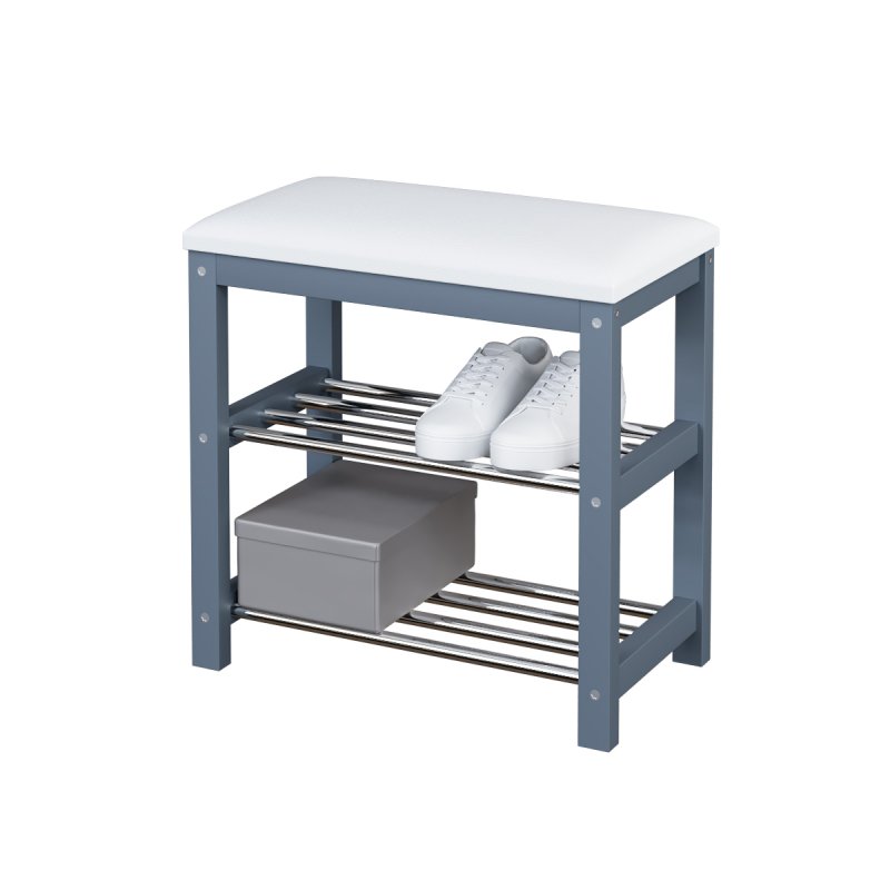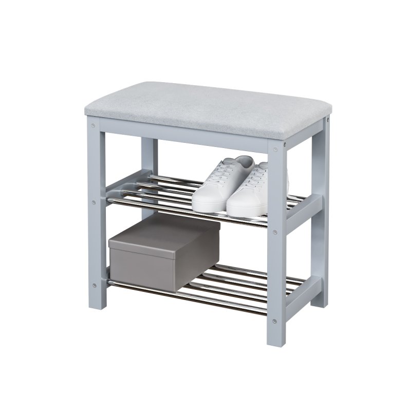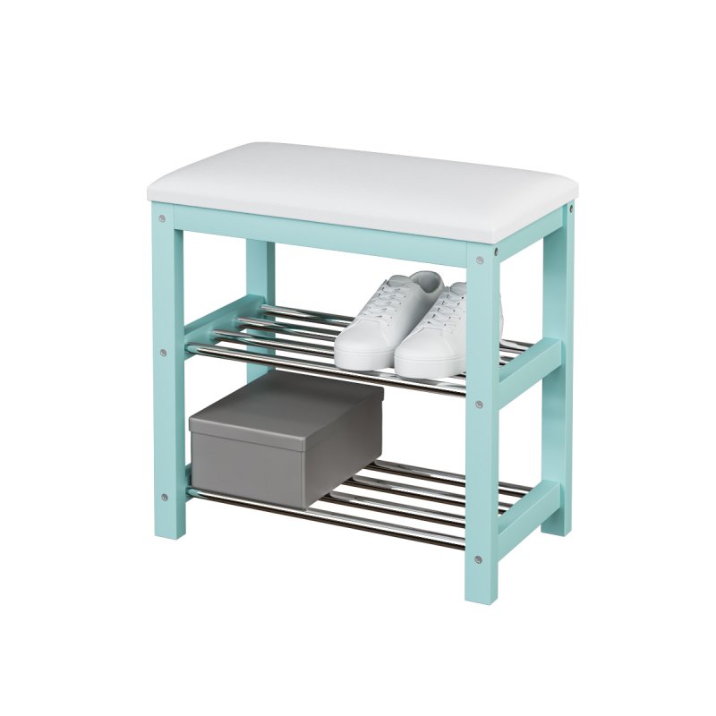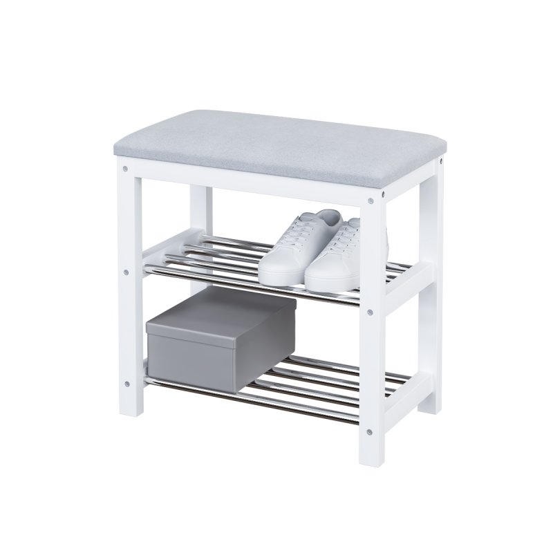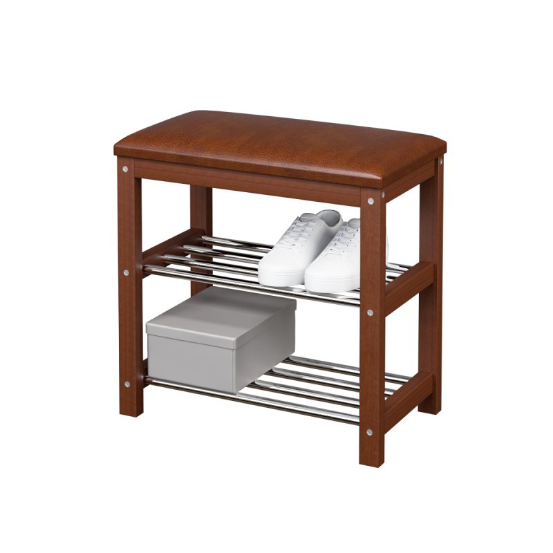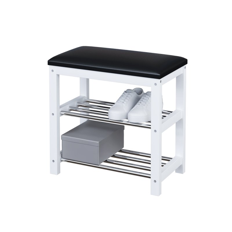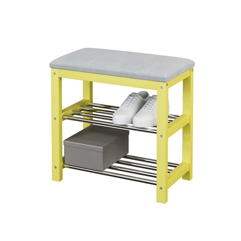 Главное, чем интересна такая банкетка для обуви с полкой – компактность. Благодаря негабаритным размерам, запросто вписывается в малые проемы, ниши и идеально – в небольшую прихожую. Две открытые полки вмещают до 6 пар сапог и туфель.