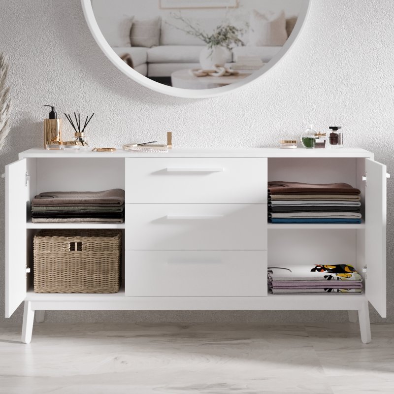 Комод “Остин 2” - стильный и удобный предмет мебели. Он не требователен в размещении и в нём достаточно места для хранения объемных вещей. Модель выполнена из высококачественного ЛДСП, а ножки - из натурального дерева - массива берёзы. Габаритные размеры изделия позволяют хранить большое количество одежды, а высота ножек удобна для уборки, как пылесосом, так и влажного типа. Размеры комода составляют (В/Ш/Г): 750×1400×400 мм.