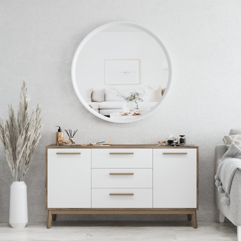 Зеркало круглой формы “Токио” обратит на себя внимание и будет интересной изюминкой интерьера. Благодаря диаметру в 1 метр, вам легко будет рассмотреть себя со всех сторон. Визуальное расширение пространства также бонус данного изделия. Основу зеркала составляет МДФ, экологически безопасный и надежный в производстве материал.