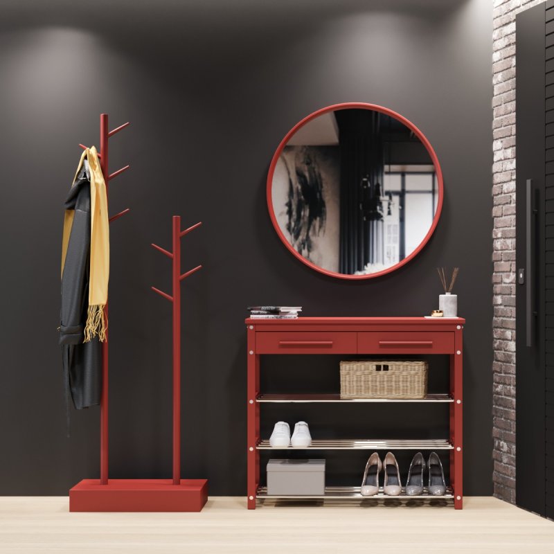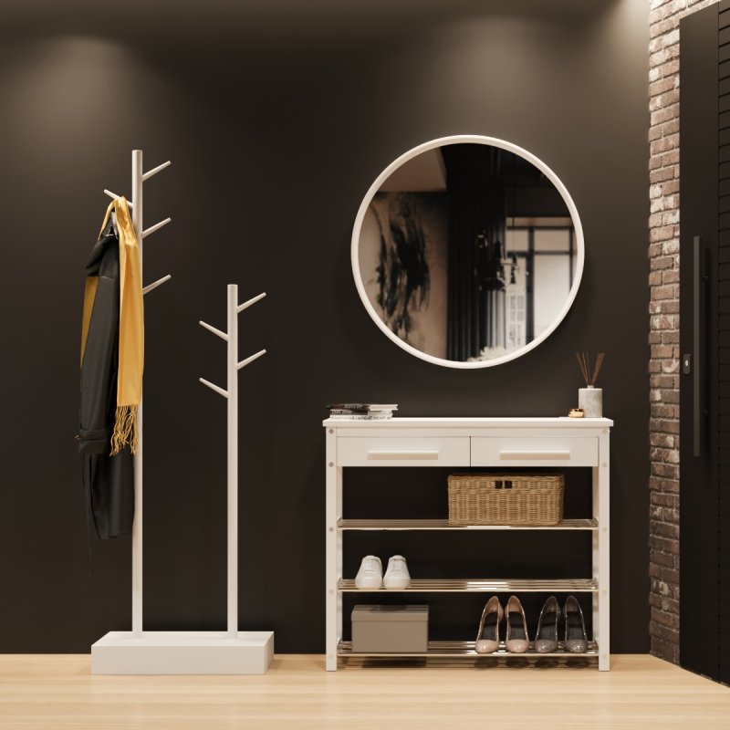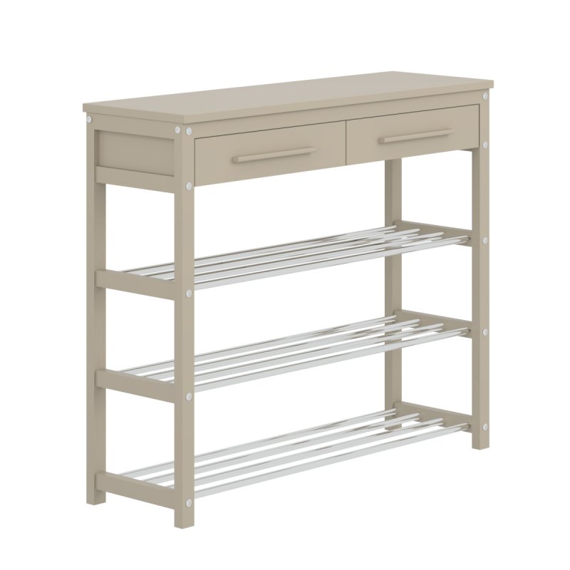 Эргономичность места для хранения обуви является большим преимуществом, т.к. подставка содержит открытые металлические полки, что позволяет сохранить ее использование надолго. Деревянные стойки выполнены из массива берёзы и покрыты лаком, поэтому не боятся сырости, а металлические трубки будет легко очистить от загрязнения.
