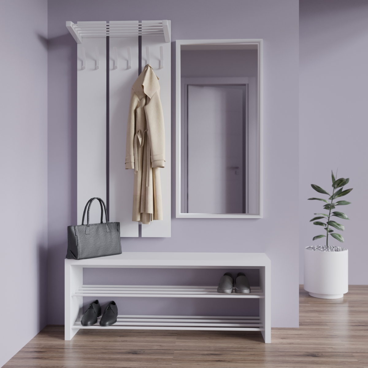 Если вам нужен полный комплект мебели для прихожей, можете купить прихожую “Аметист Белая”. Готовый набор значительно упростит вам процесс подбора мебели, так как все изделия сочетаются между собой не только цветом, но и размером.