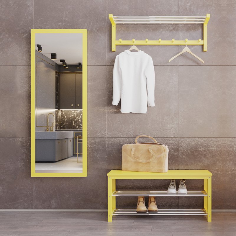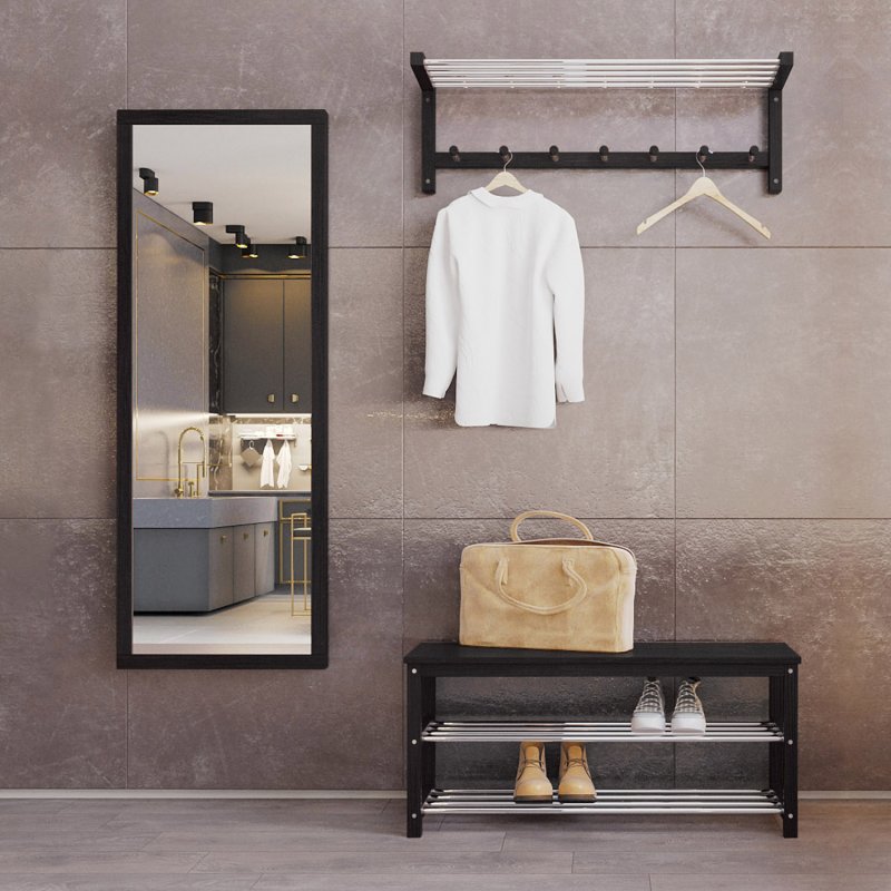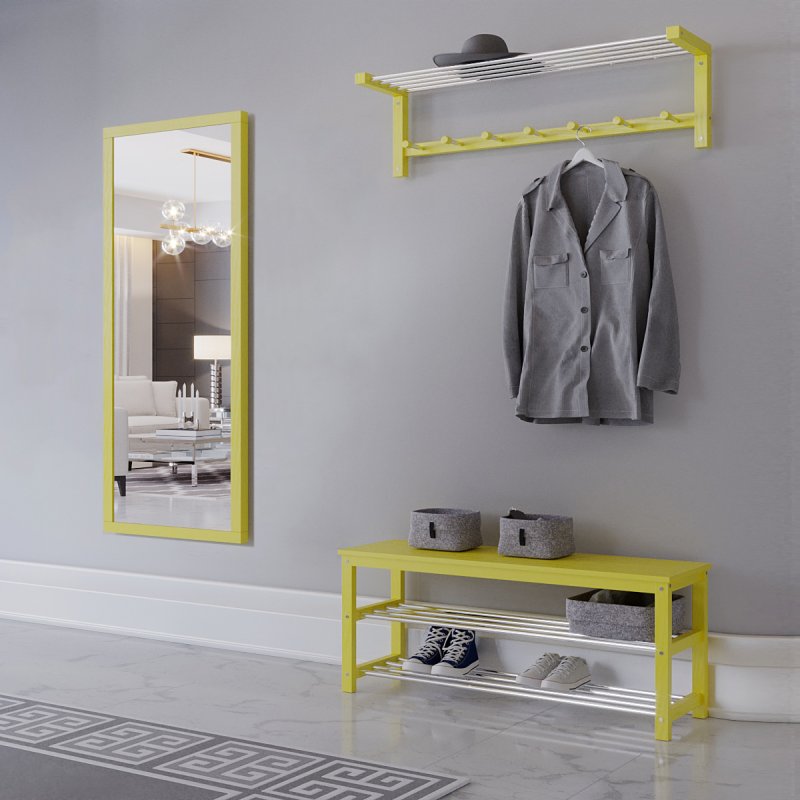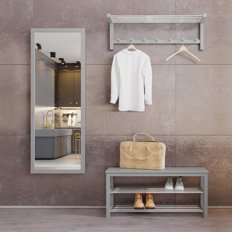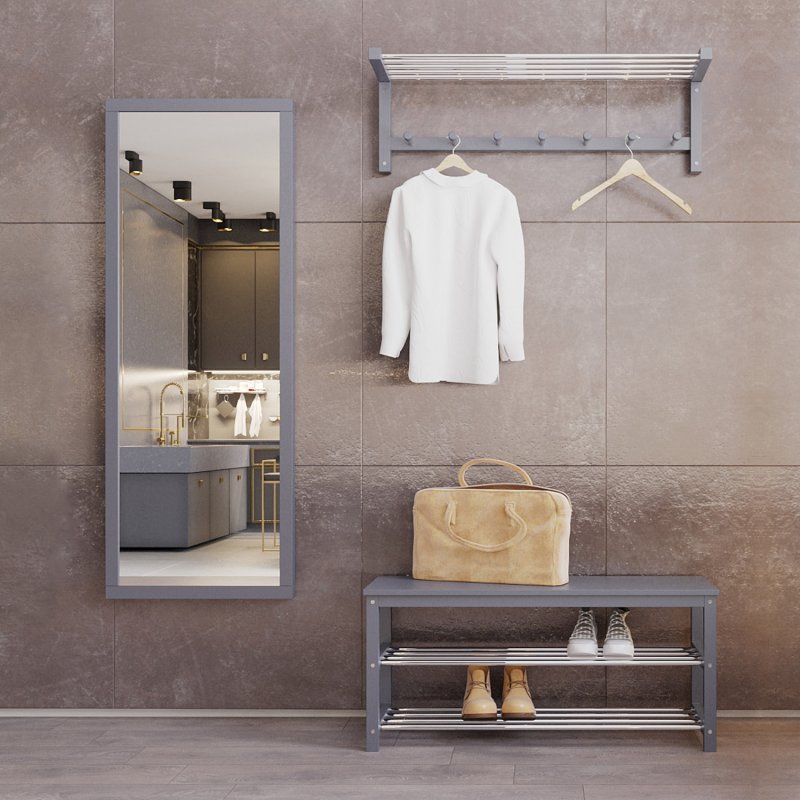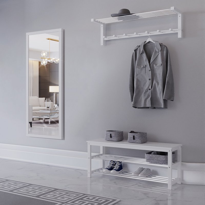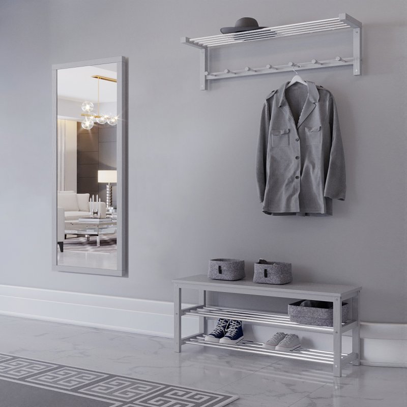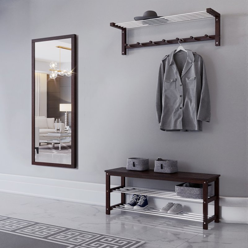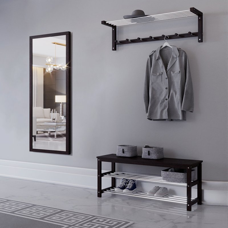 Гарнитур в прихожую “Невада 4” – это оптимальное сочетание незаменимых в быту изделий: зеркала, вешалки и банкетки.