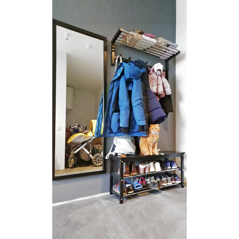 Банкетка для сидения “NVD-04” – незаменимая составляющая набора, выполняющая сразу две функции. Во-первых, это место для сидения, позволяющее комфортно надеть/снять обувь. Во-вторых, это вместительная подставка для хранения обуви. Можете смело размещать на полках 8-10 пар уличной обуви, трубки хромированные и не боятся влаги. Габаритные размеры модели (В/Ш/Г): 480×1020×320 мм.