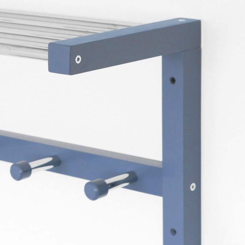 Вместительная настенная вешалка “NVD-02” также деревянная, имеет семь прочных крючков для одежды и полку для головных уборов. Полка и крючки металлические, изготовлены из хромированной трубы. Габариты вешалки (В/Ш/Г): 320×1000×250 мм.