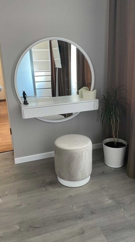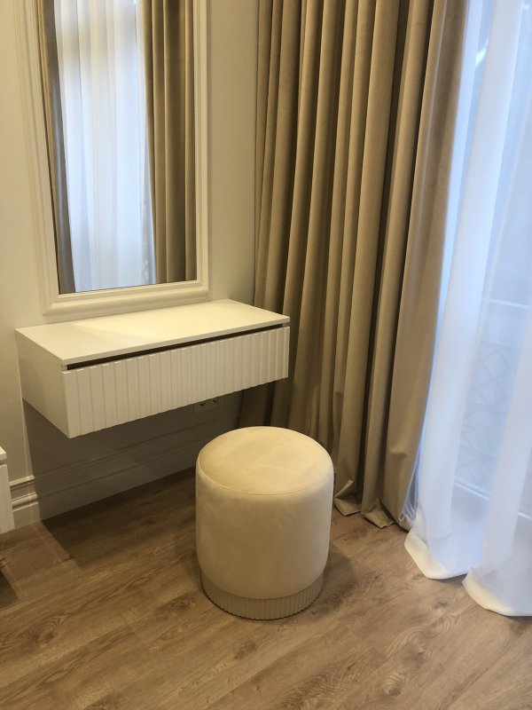 Такого рода мягкий пуф можно комбинировать со всевозможными гарнитурами или создавать их. На нашем сайте он уже есть в готовых спальных комплектах с трюмо “Камри”, а также с дополнением в виде комода “Капрезе”, где гармонично подобраны цвета обивки и панелей предметов. Вы можете купить пуф и только, он может выступать независимой единицей.