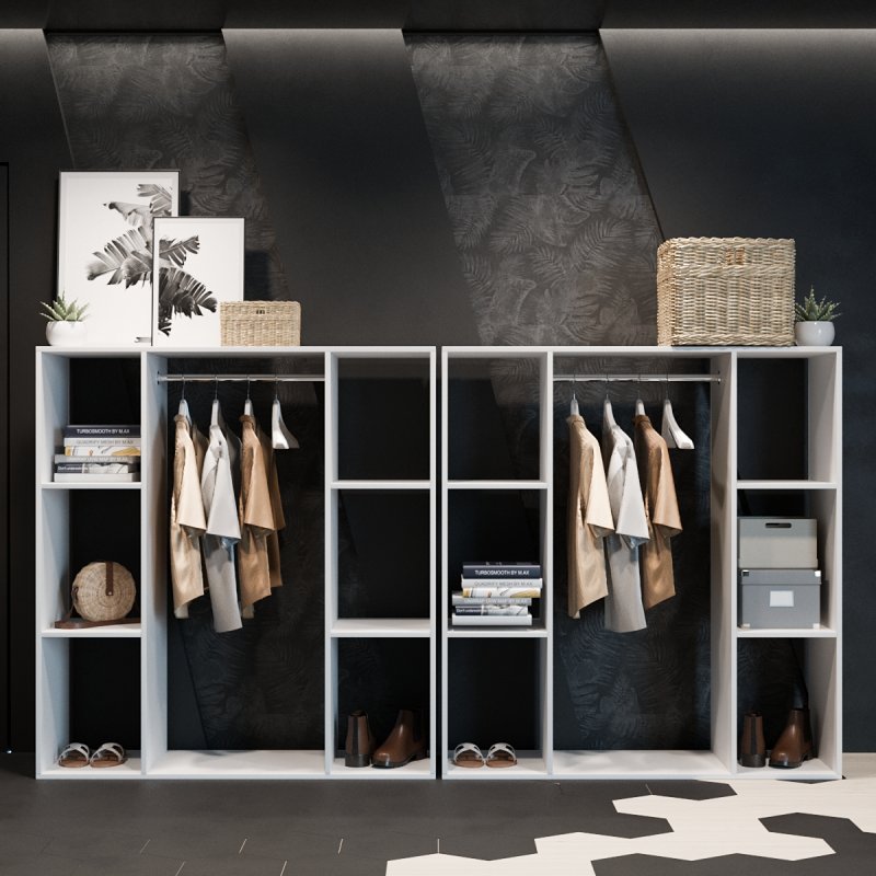 В отличие от предыдущей модели “Галлант 3А”, данная предусматривает наличие центральной части - для размещения вещей на плечиках, и трёх полок по обе стороны от неё, на которых могут храниться вещи как одёжного ассортимента, так и прочее - книги, парфюмерия, кожгалантерея и т.д. На нижней полке стойки прекрасно поместится обувь и сумки. Верхняя полка вешалки придаёт дополнительной функциональности, т.к. позволяет не только размещать на хранение вещи, например, головные уборы, платки, шарфы и другое, но и защищает содержимое открытого шкафа от попадания пыли. Наиболее полный ассортимент продукции Вы можете посмотреть на сайте meblipark.com.
