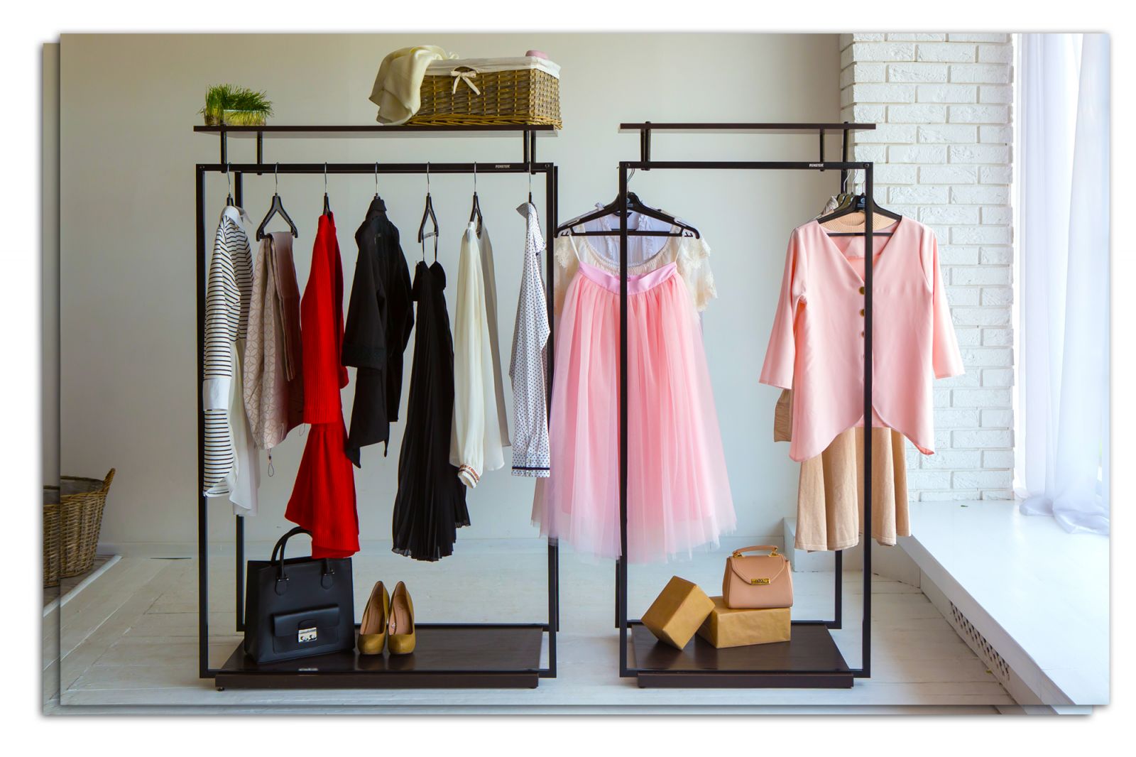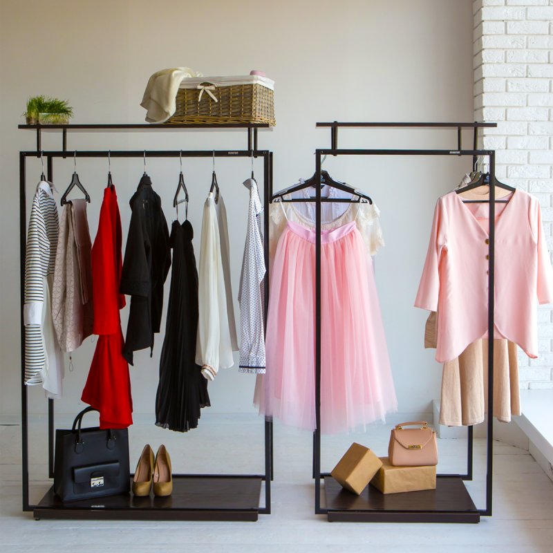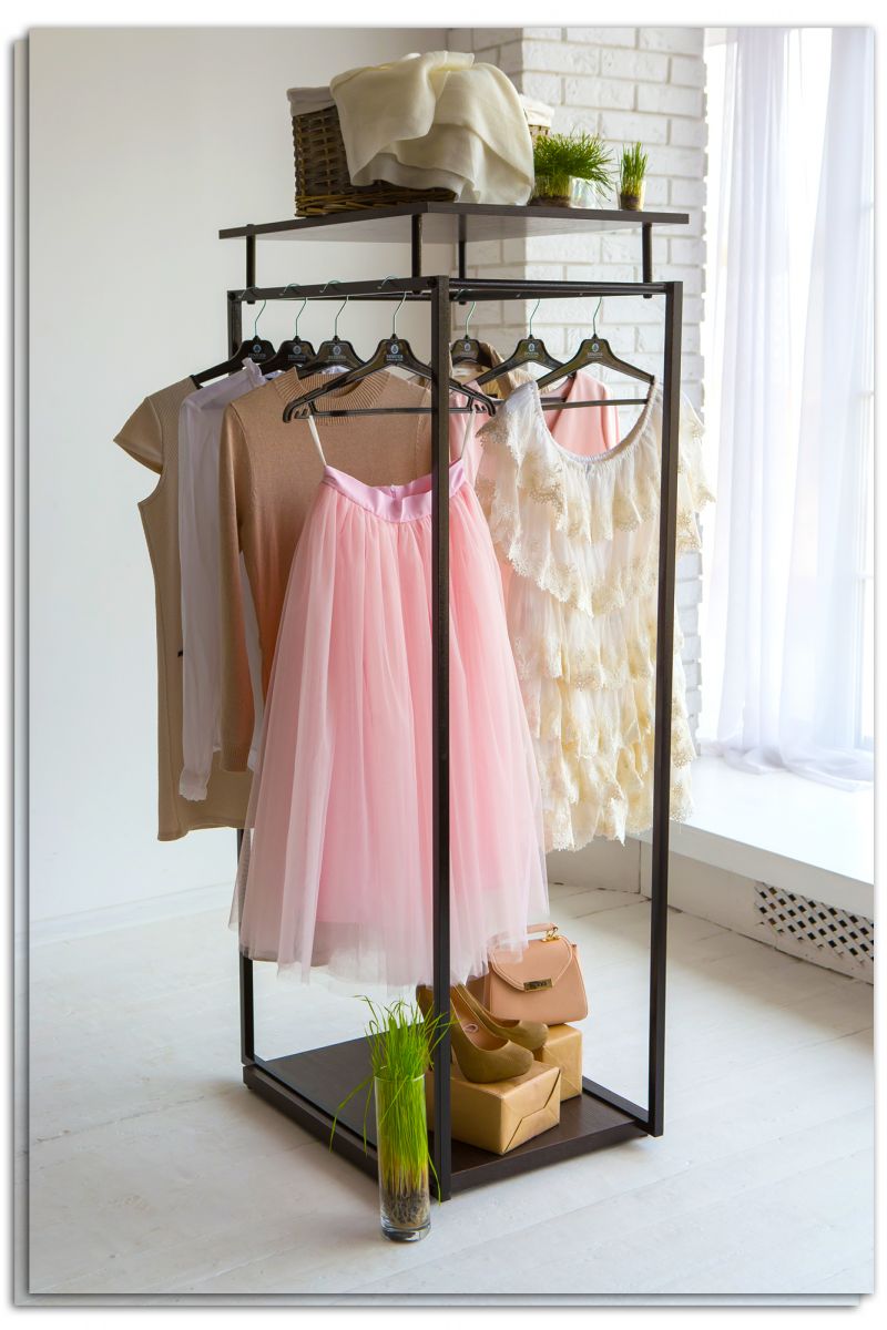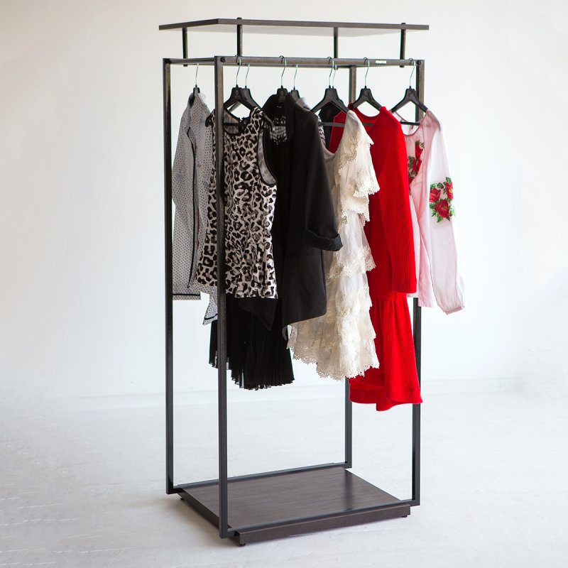 Несомненно, купить напольную вешалку стоит и для оформления выставочной витрины. Развесив одежду по всем сторонам, Вы обеспечите её объёмный показ, а всесторонний подход привлечёт гораздо больше посетителей в Ваш магазин. Используйте вешалку с полками в качестве агитационного элемента среди прочих деталей в интерьере. Стойка из металла очень прочная и выносливая, но при этом является достаточно компактной и экономит пространство.