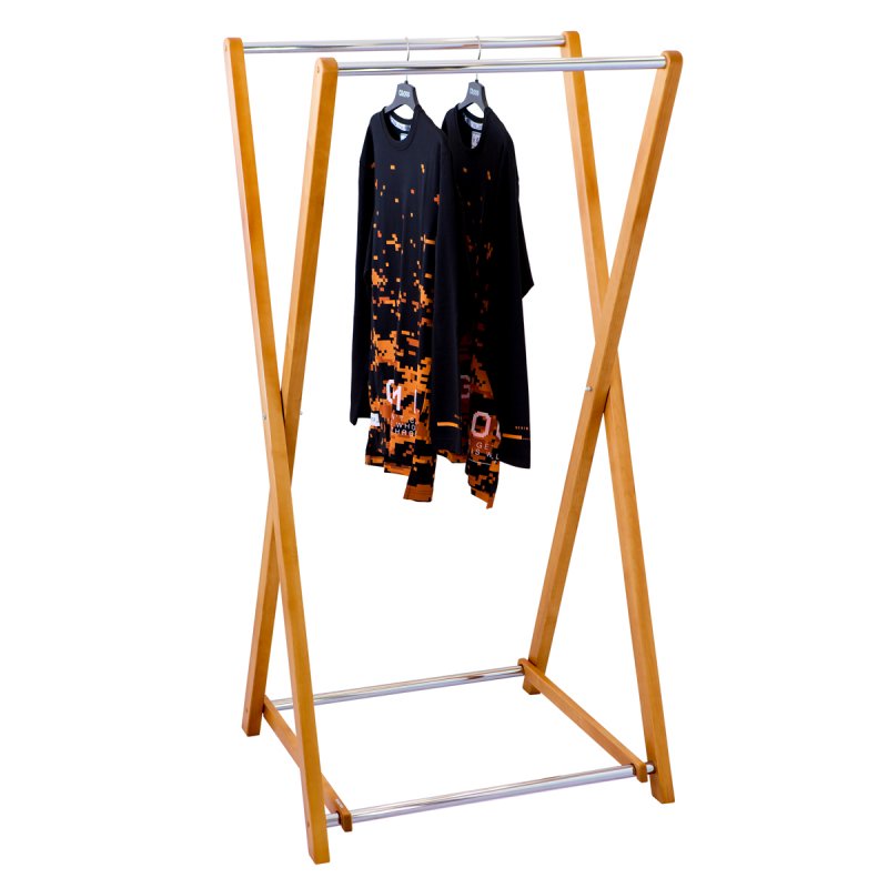 Модель стойки для одежды Модус 3 сделана из натурального дерева и хромированной металлической трубы. Деревянные части окрашены стойким полиуретановым лаком производства Италия. Они надежно защищает их от царапин и других случайных повреждений.