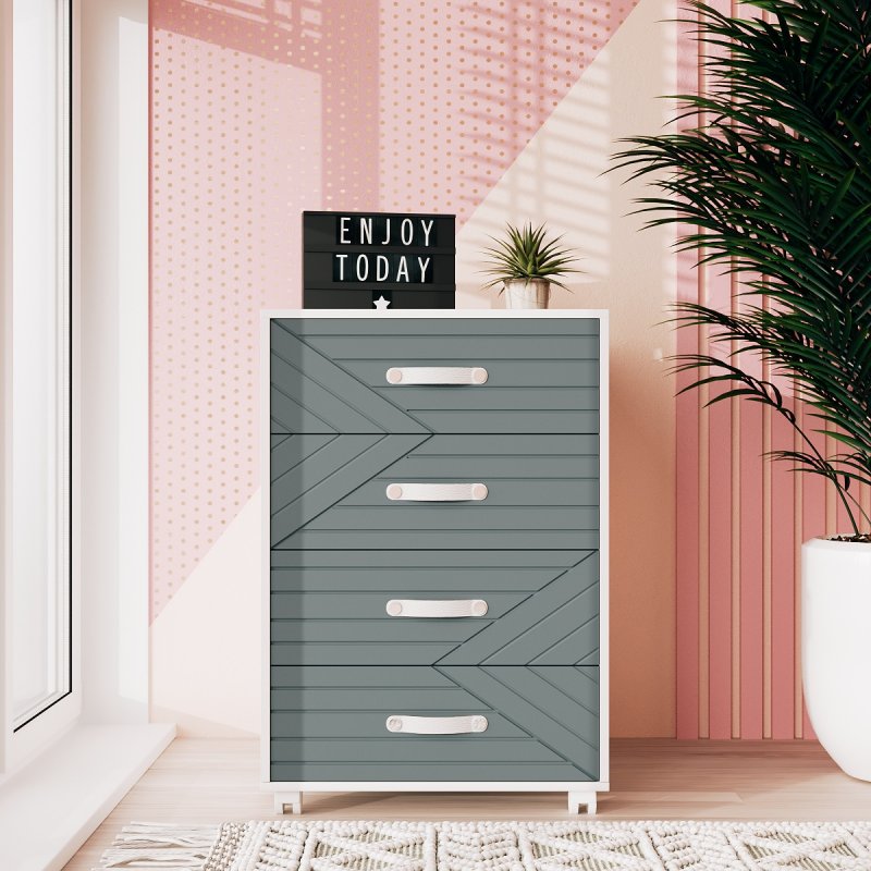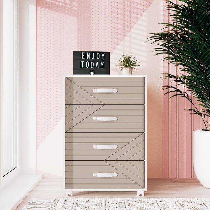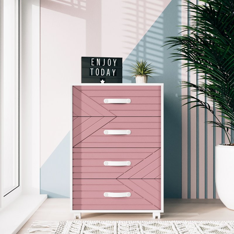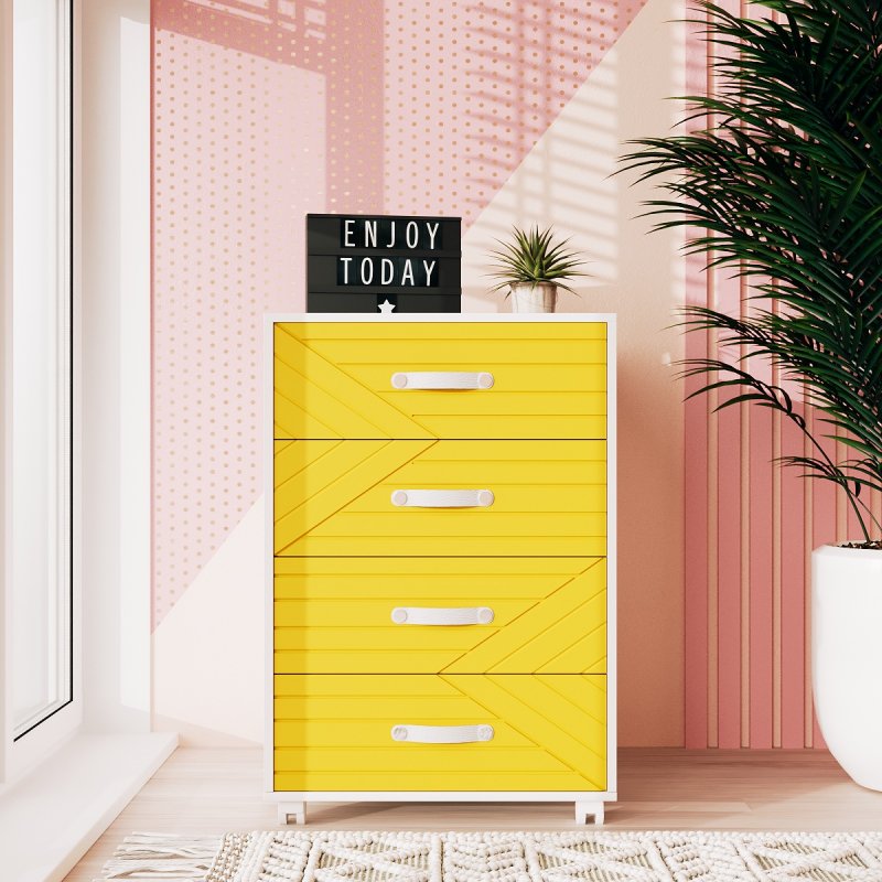 Мы предлагаем комод на колёсах на выбор в двух удобных размерах: 750х500х400 мм (вариант А) и 585х500х400 мм (вариант В). Прямоугольная форма является наиболее практичной и универсальной. Высота и ширина столешницы позволяют также поставить на неё цветы, фотографии и другие предметы декора. А колесики делают изделие ещё более мобильным, позволяя с легкостью перемещать его в нужное место. Комод на 4 ящика на колёсах представлен в шести ярких и стильных оттенках (желтый, какао, лагуна, элегант грей, грин айс и лаванда). Каркас и ручки выполнены в белом цвете, что придаёт изделию чистоты и легкости. На нашем сайте вы можете найти тумбы Марокко еще в чёрном цвете и аликанте. А также подобрать письменный стол, который идеально дополнит композицию и придаст ей завершённости.
