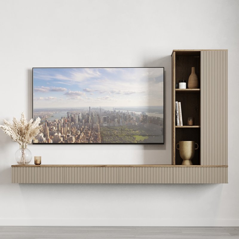 Окрашенное МДФ в сочетании с ЛДСП – отличный выбор для создания интерьера в современном стиле. Материал устойчив к внешним повреждениям, способен выдерживать нагрузку и не деформироваться при этом. Наш интернет-магазин предлагает отличное соотношение цены и качества. Тумб под телевизор имеет классическую прямоугольную форму, что позволит установить ее в любой части вашей комнаты. Настенный крепеж – всегда надежный и удобный.
