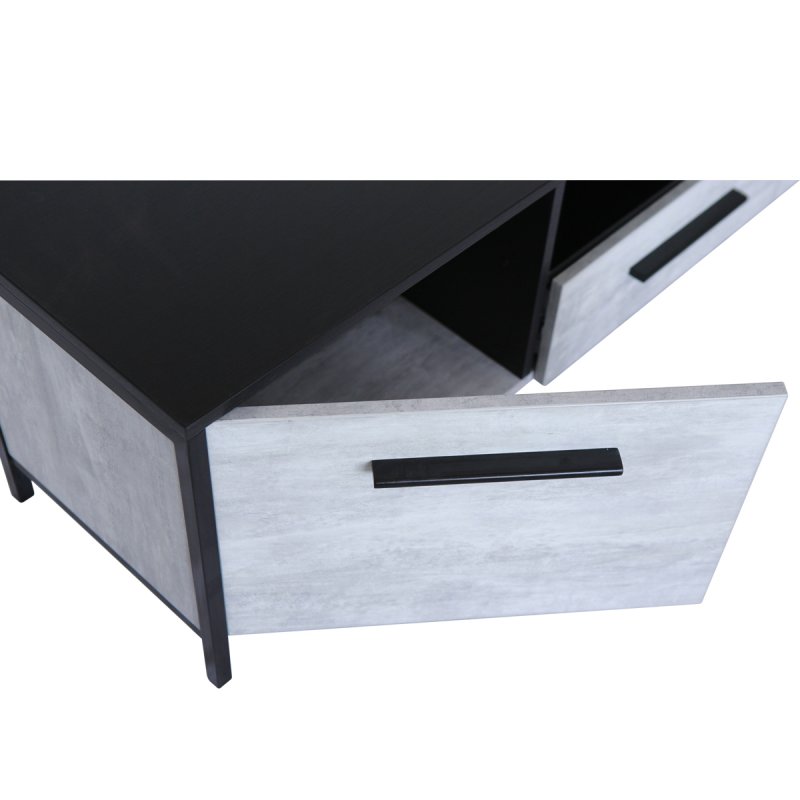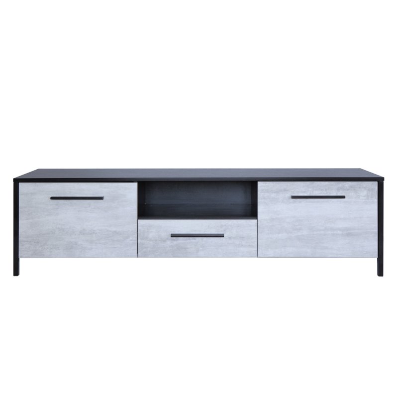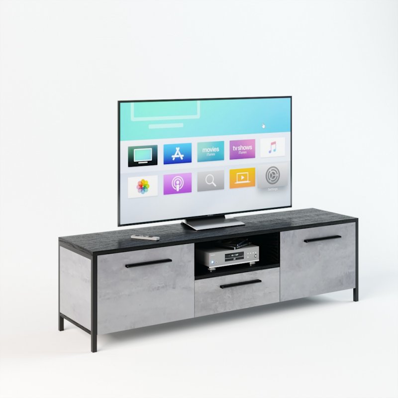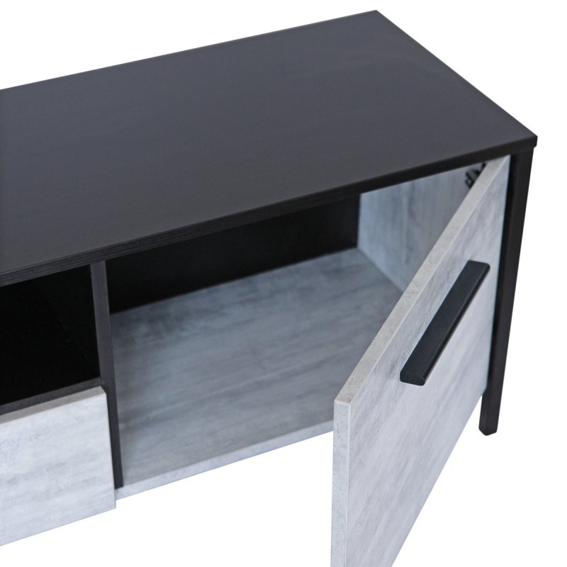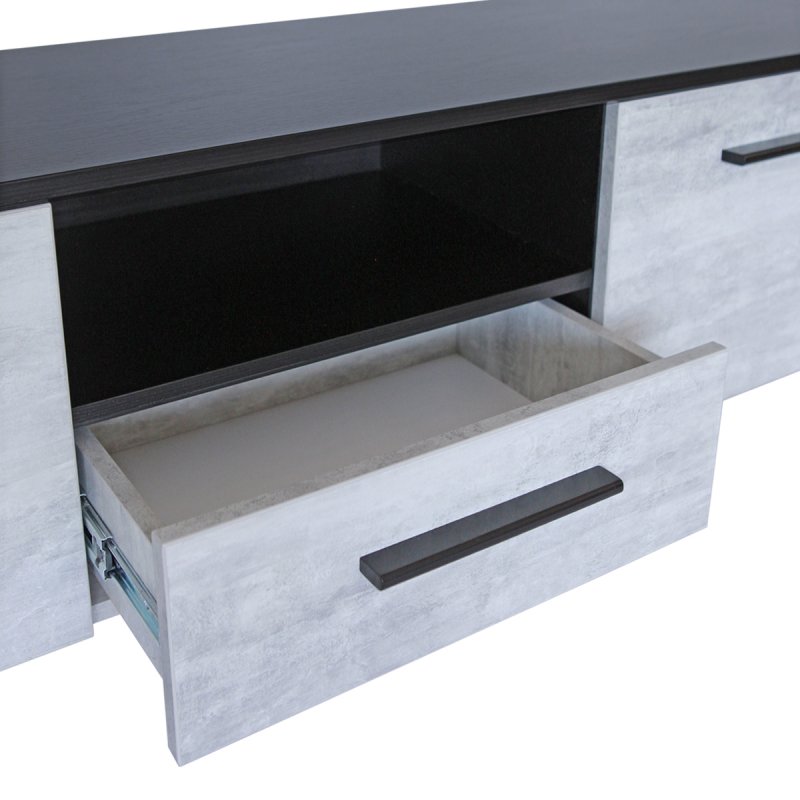 Модель предполагает наличие двух высоких открывающихся секций по бокам, в которых можно сложить различные бытовые мелочи, и ящика с нишей по центру. Данное изделие – это красивый и удобный способ организовать комфортное хранение вашей техники. Мощная и устойчивая на плоскости конструкция обеспечит надежное положение вашему телевизору.