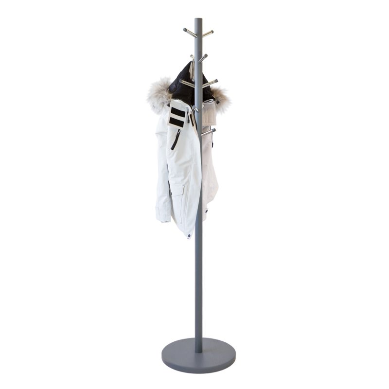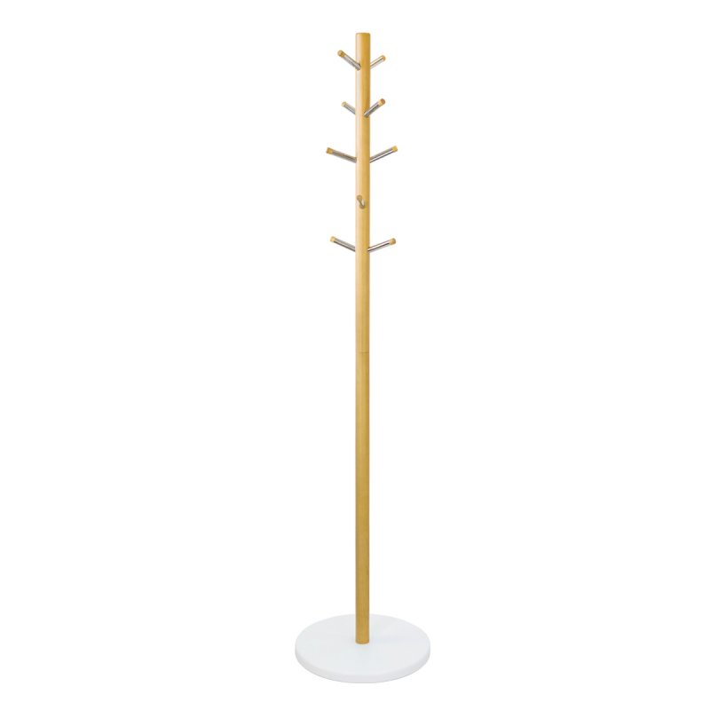 Напольная вешалка “Марсель” имеет 10 металлических крючков с деревянными наконечниками, зафиксированных в стойке под небольшим углом. Такое конструктивное решение гарантирует четкое фиксирование одежды и неспособность съезжать с крючка.
