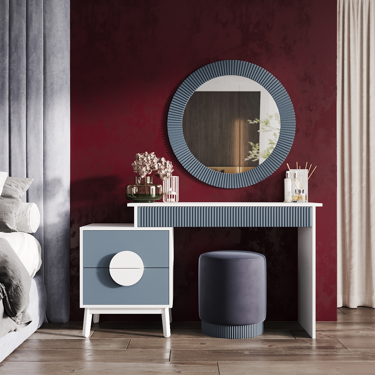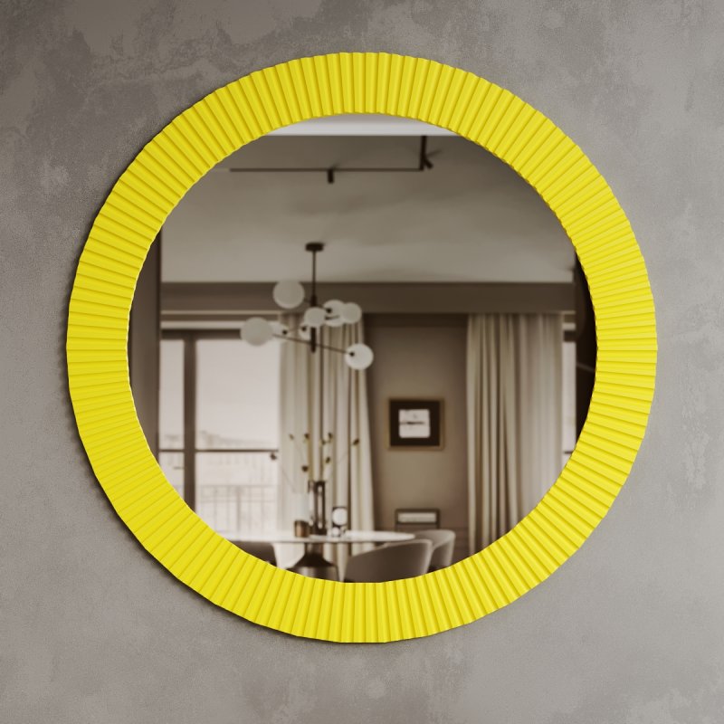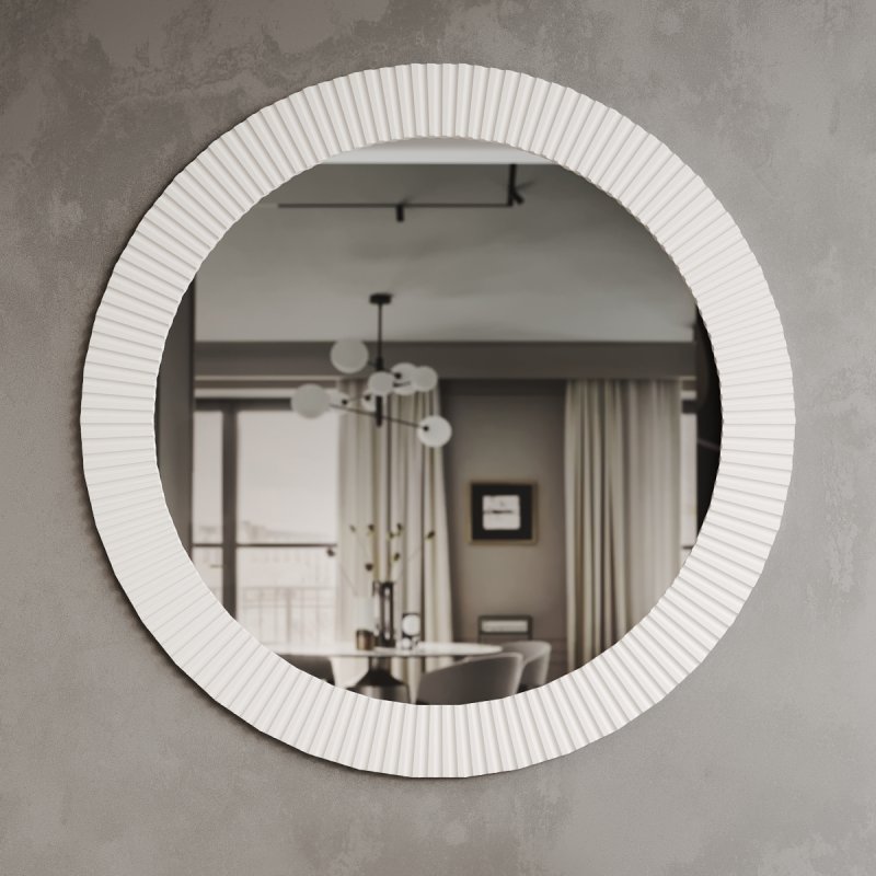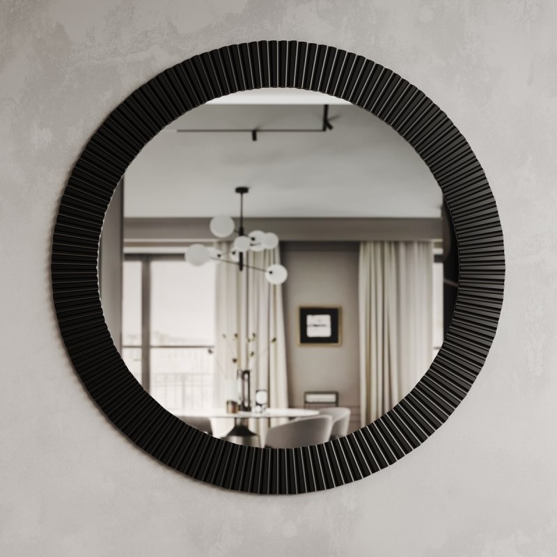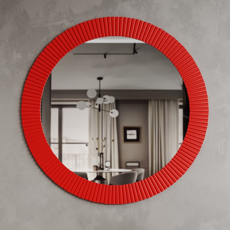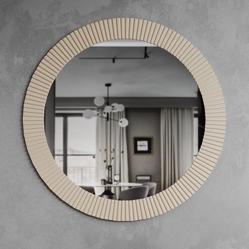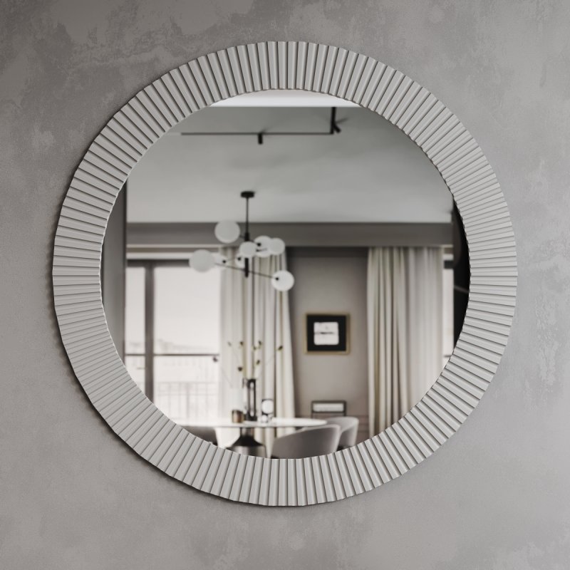 Место, предназначенное для зеркала, должно быть хорошо освещенным. Прекрасным дизайнерским решением будет создание композиции из нескольких зеркал данной модели. Размеры данной конструкции: 715x715x20 мм или 915x915x20 мм. Круглая форма зеркала поможет визуально расширить пространство, а узкое помещение сделает светлее и объемнее. Форма имеет мягкое очертание, что придает помещению легкости. Зеркало в спальню от нашего производителя станет настоящим украшением вашего дома.